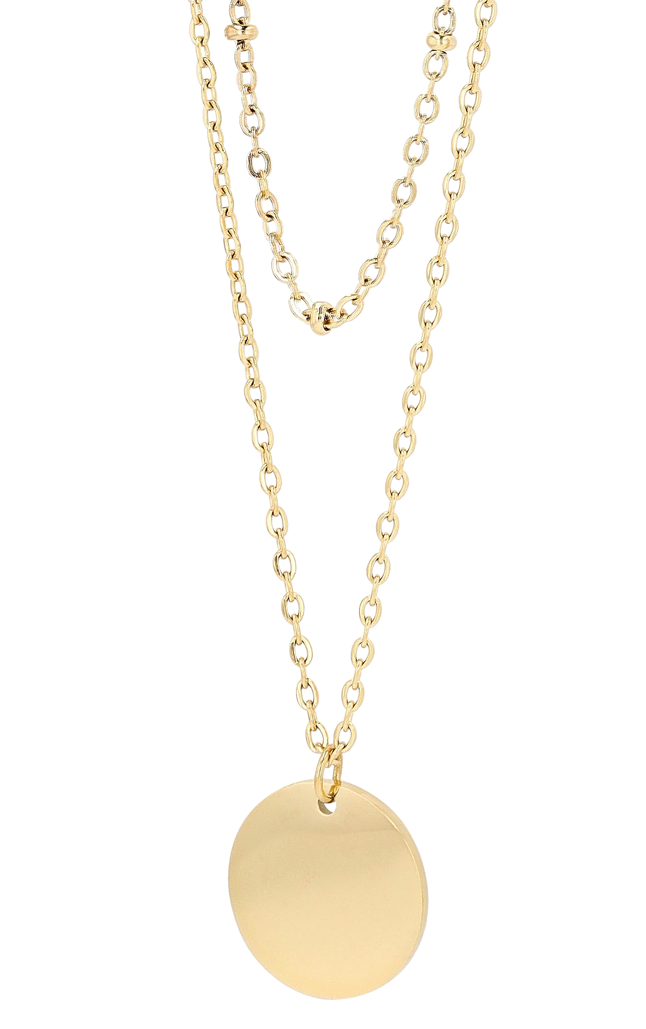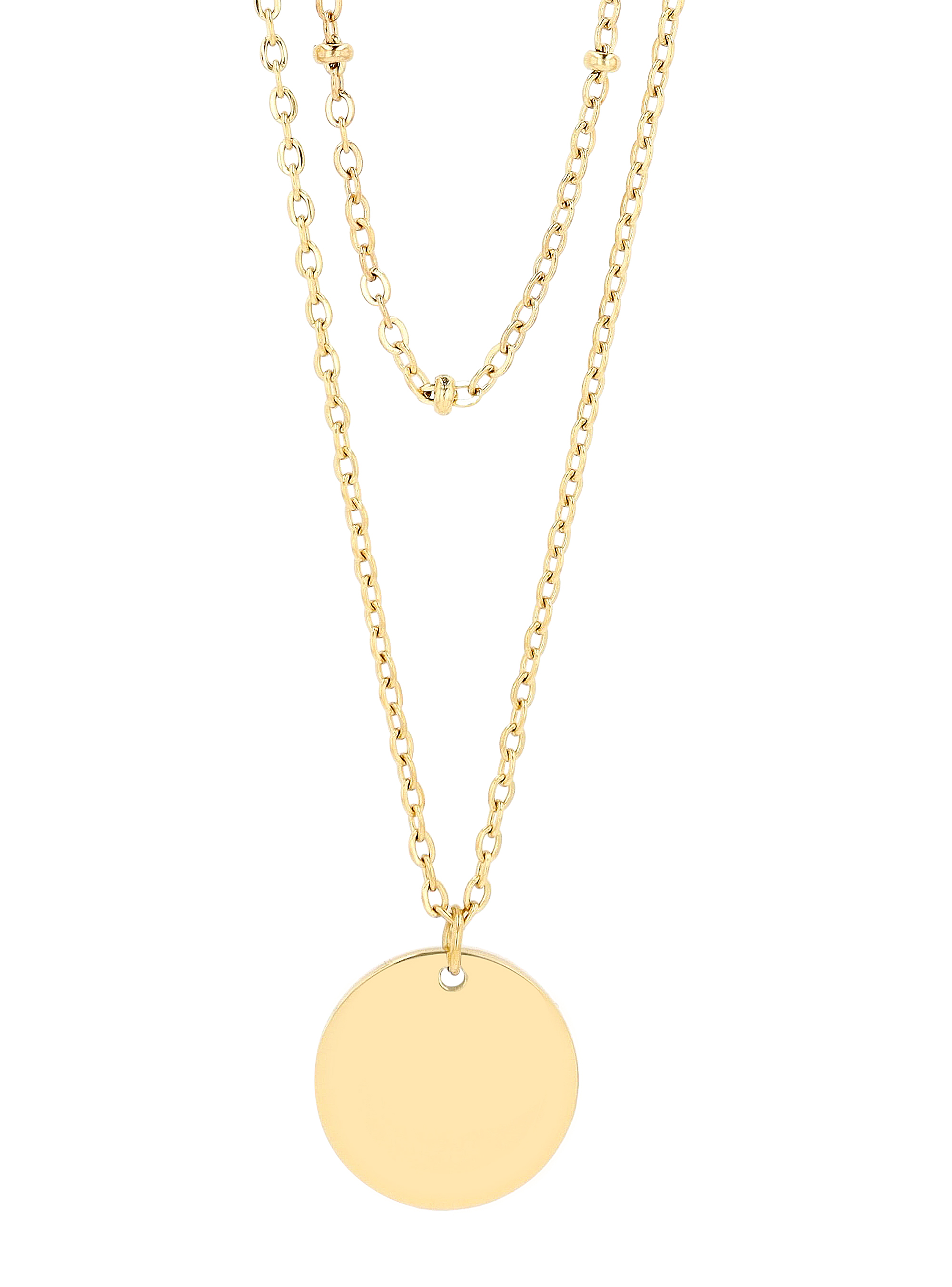 Productinformatie ""Münz" Akzent Edelstahlkette mit gravurfähigen Anhänger, 43+5 cm, goldfarbig"
