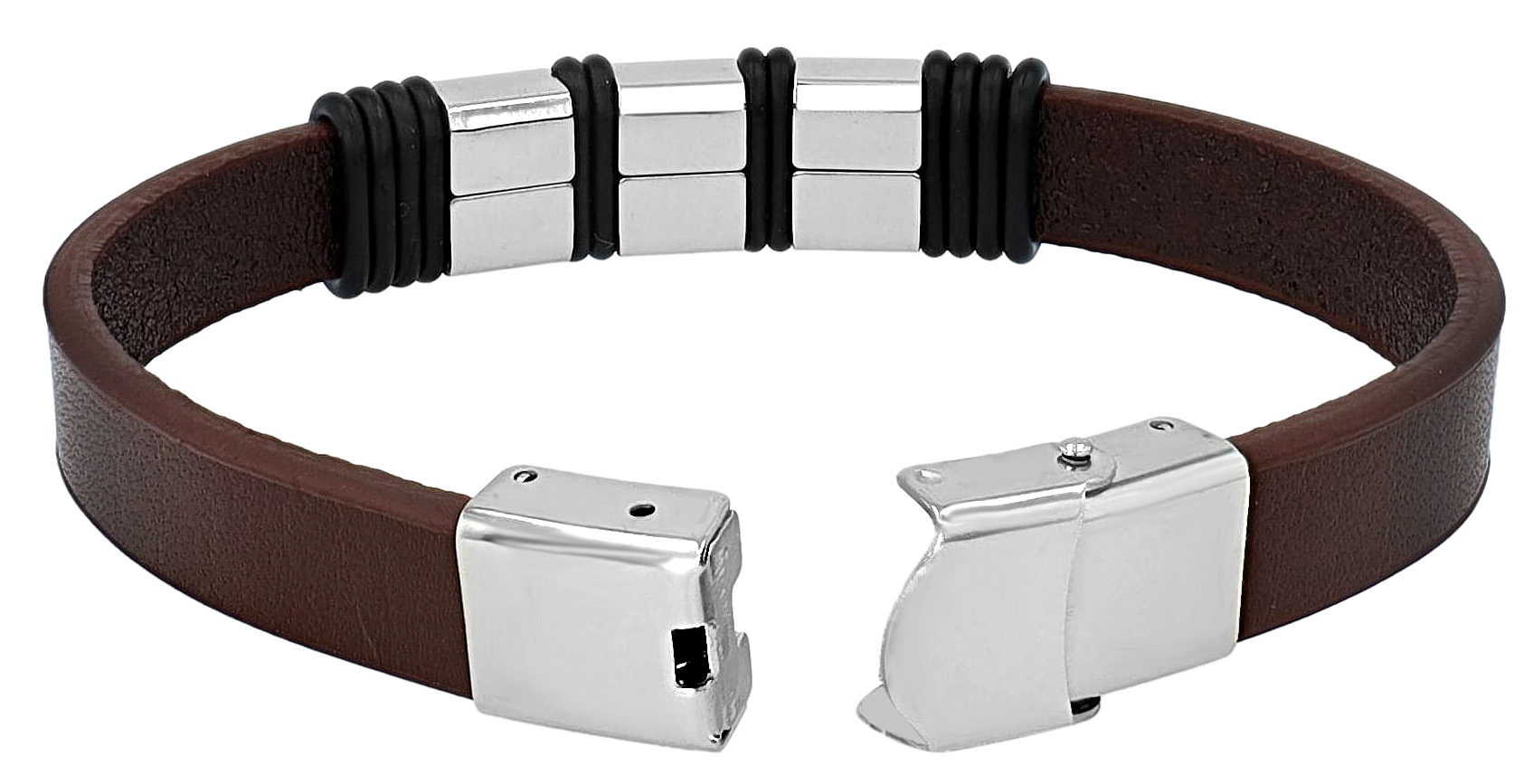 Productinformatie ""Nadim", Akzent Armband, Echtleder & Edelstahl, Hakenverschluss, braun/silberfarben/schwarz, 21 cm"