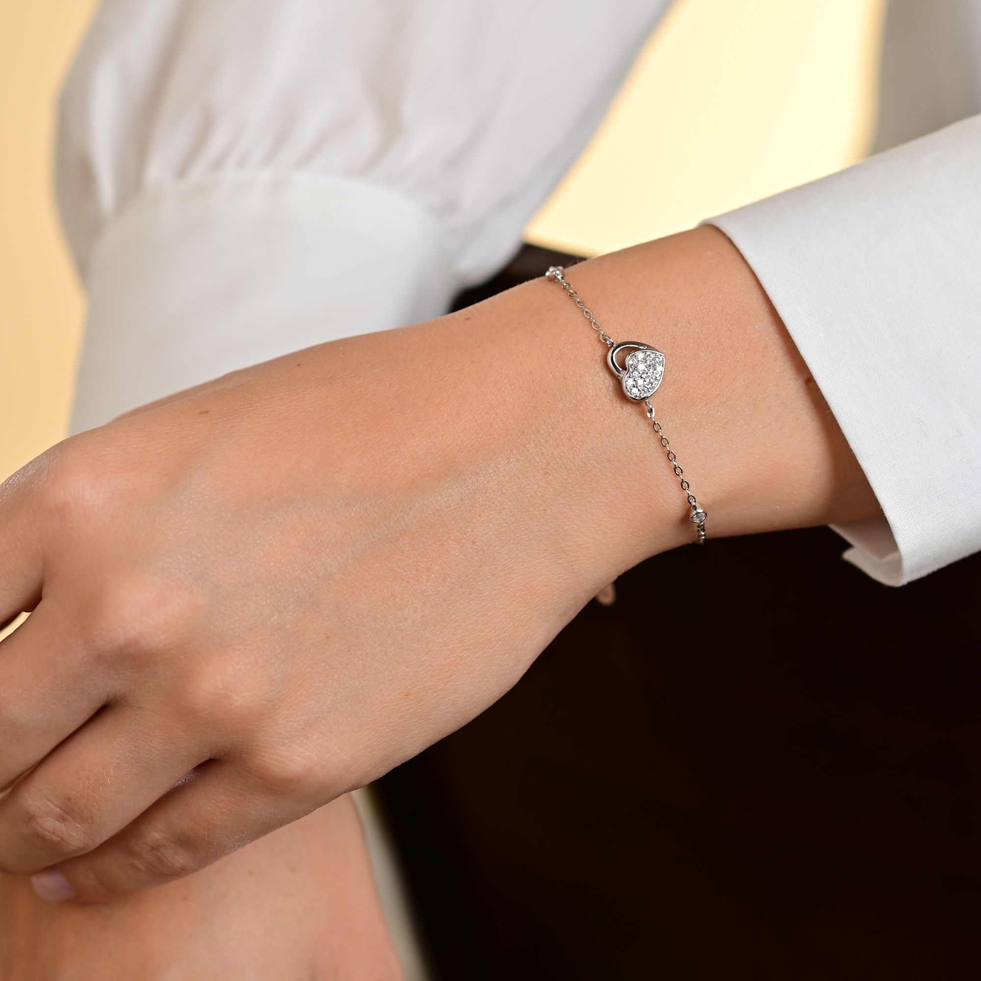 Ontdek de delicate schoonheid van onze armband van hoogwaardig 925 Sterling zilver, met een betoverende hartvormige hanger met sprankelende zirkonia. Dit delicate sieraad combineert gratie en elegantie met een vleugje romantiek en is verkrijgbaar in drie elegante versies: klassiek gerhodineerd, luxueus verguld of vrouwelijk roségoud verguld.