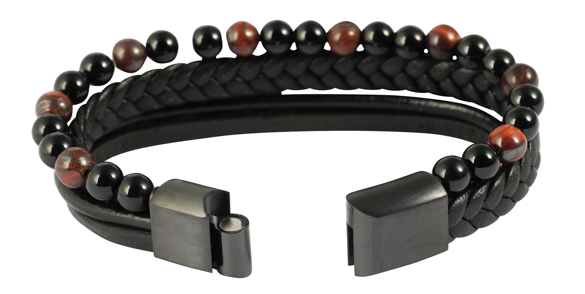 Productinformatie ""Namik" 23 cm, armband van imitatieleer met natuursteen (onyx/rood tijgeroog), VE-4"