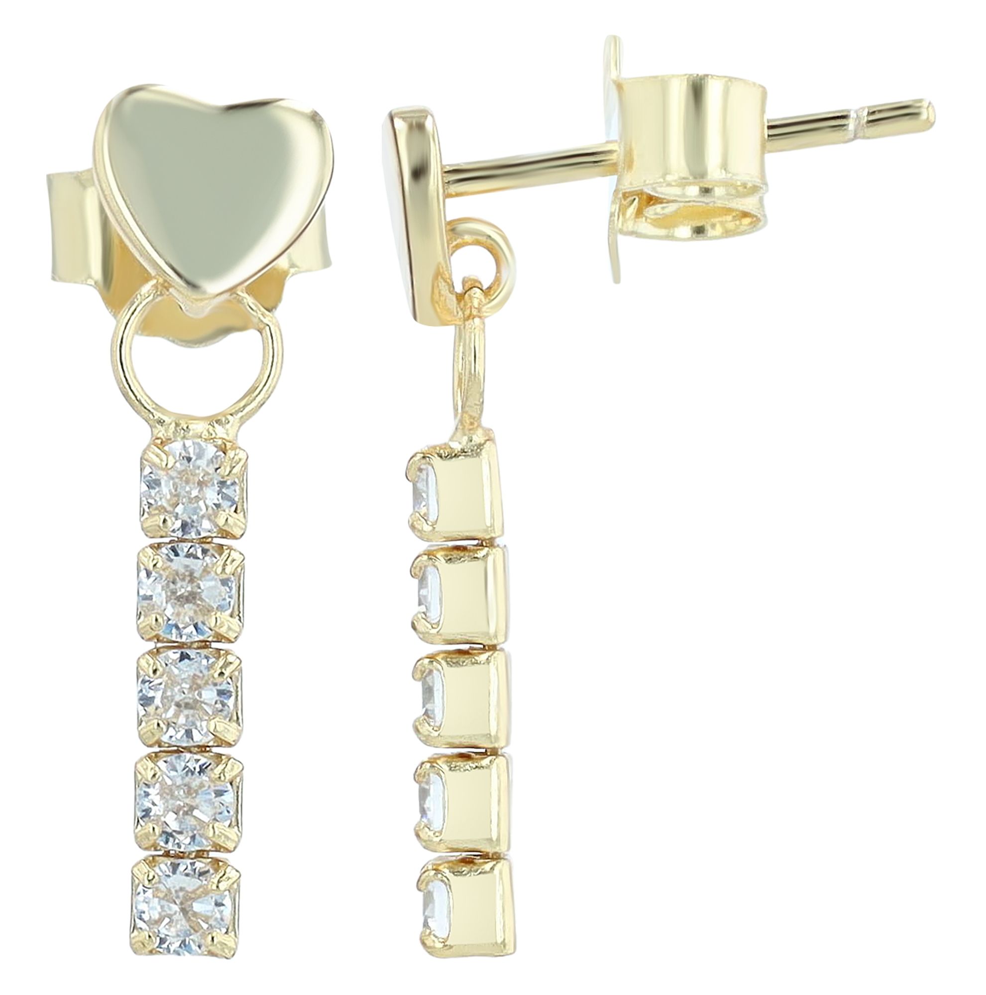 Productinformatie ""Naruko" 925/- Echt Silber, Herz Ohrstecker mit Hänger, Zirkonia, vergoldet"