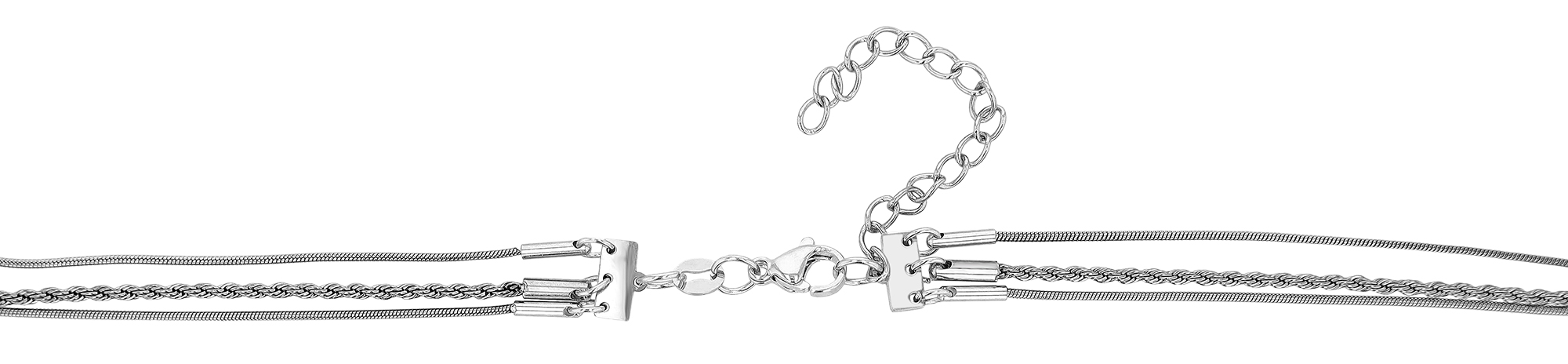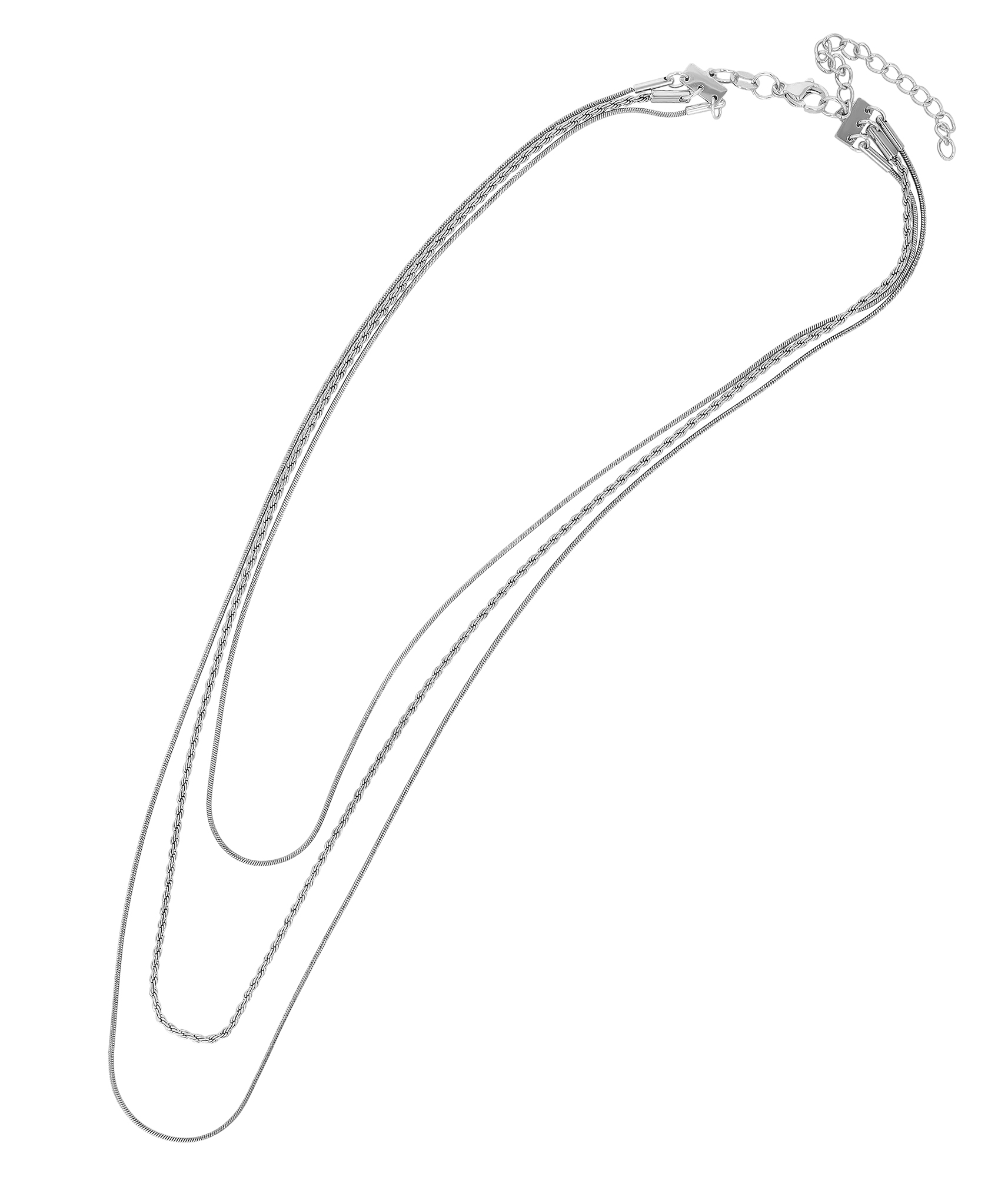 Krijg de trendy gelaagde look zonder het gedoe van mixen en matchen. Deze moderne gelaagde ketting van het merk Akzent combineert drie perfect op elkaar afgestemde kettingen in één sieraad en richt zich volledig op de esthetiek van de kettingen zelf in plaats van op opvallende sieraadelementen.