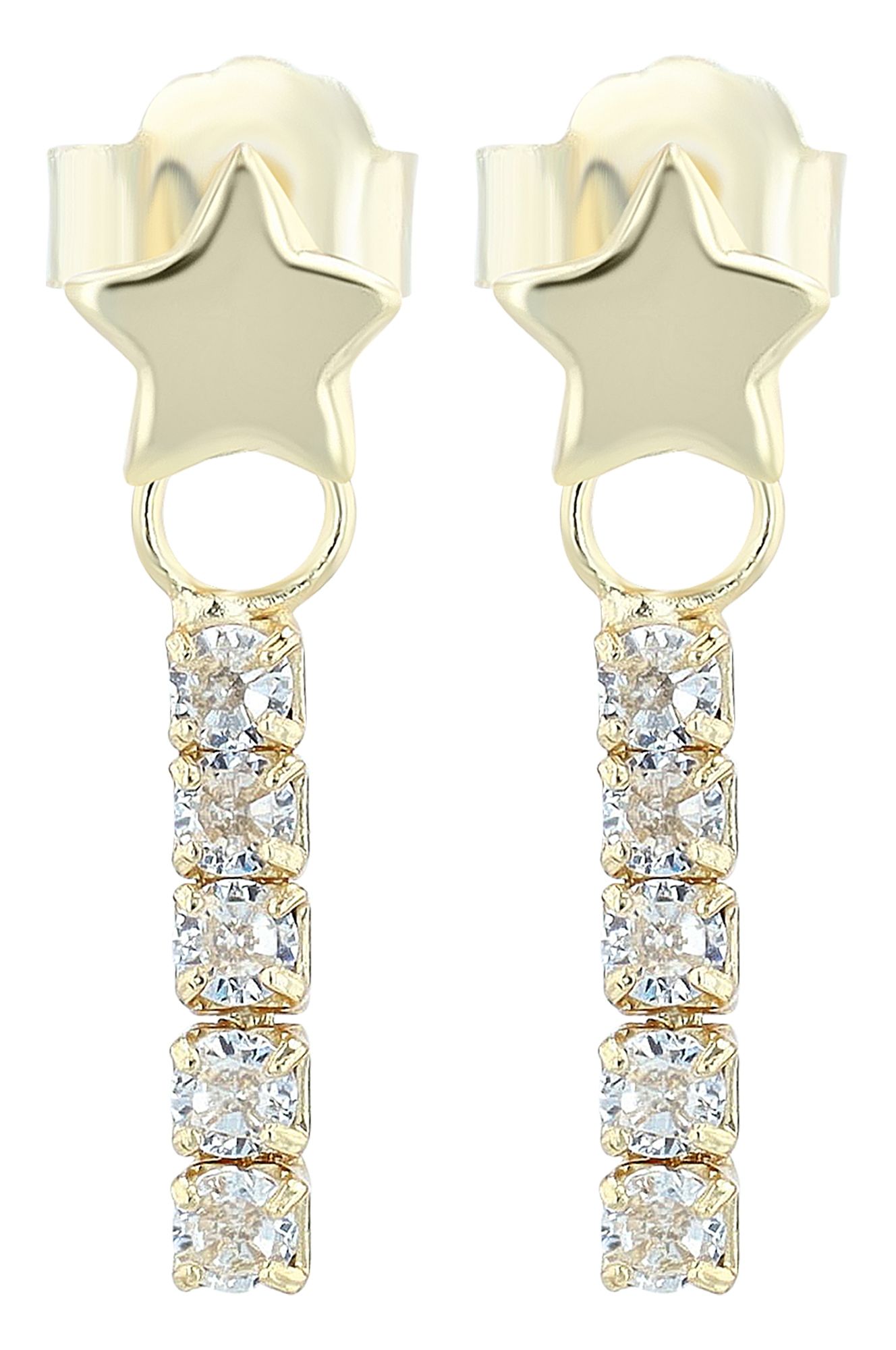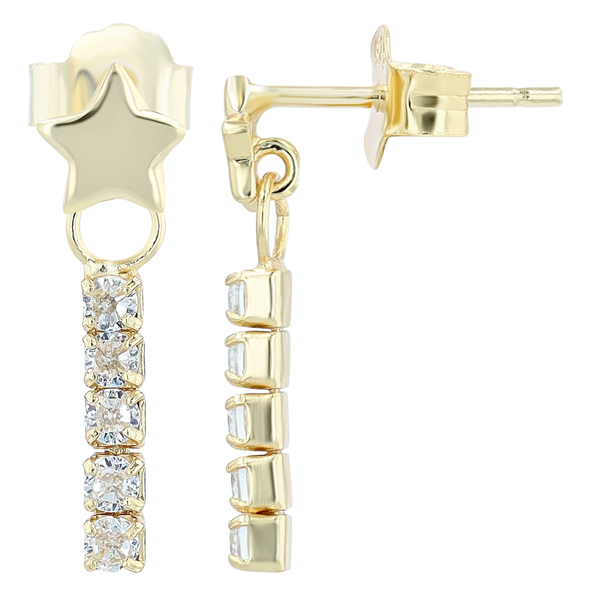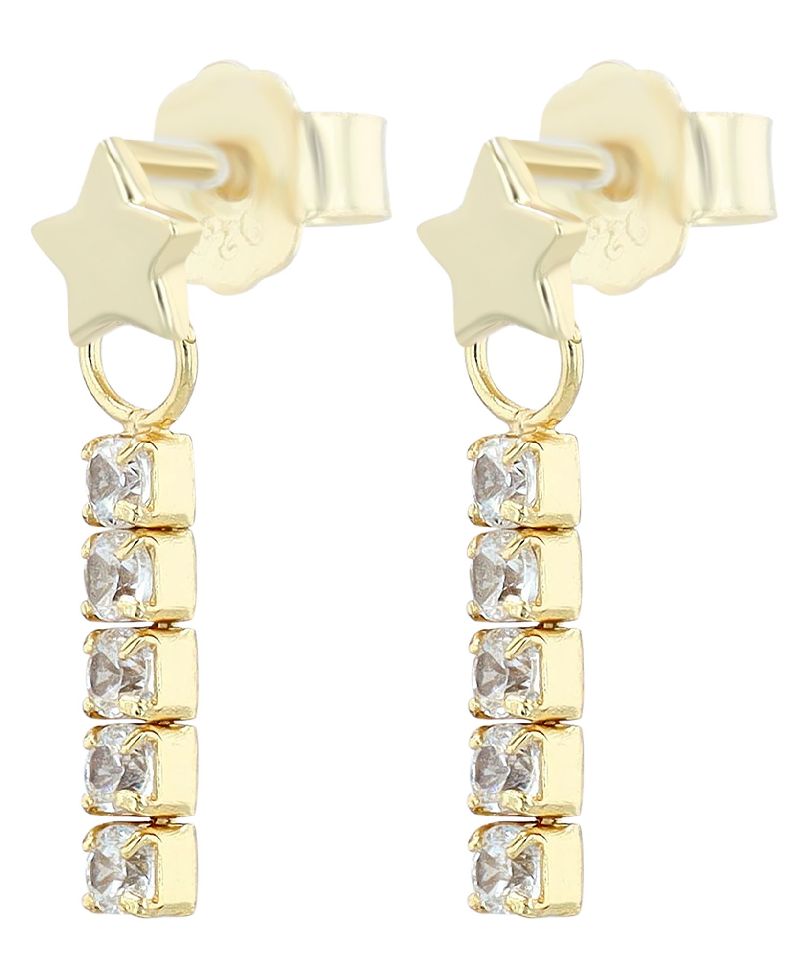 Productinformatie ""Nelenia" 925/- echt zilver, ster oorbellen met hanger, zirkonia, verguld"