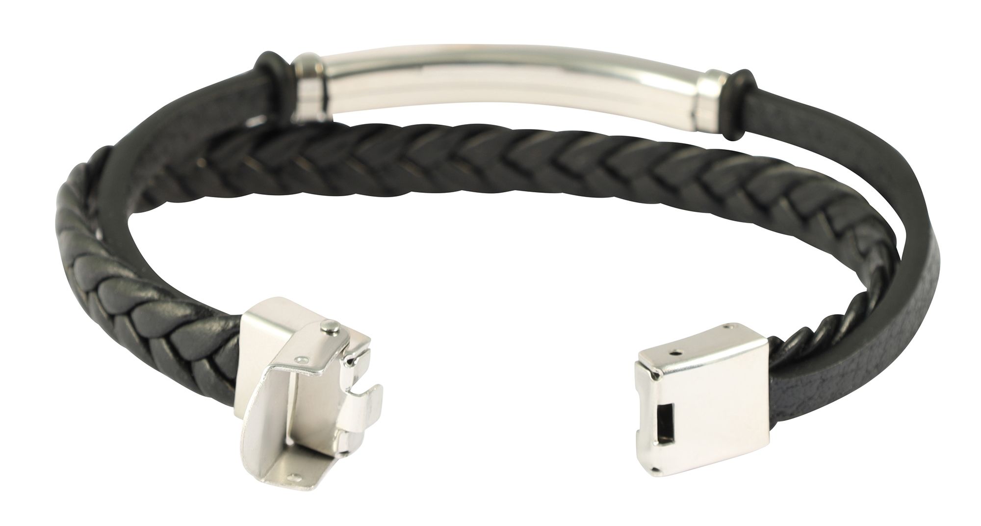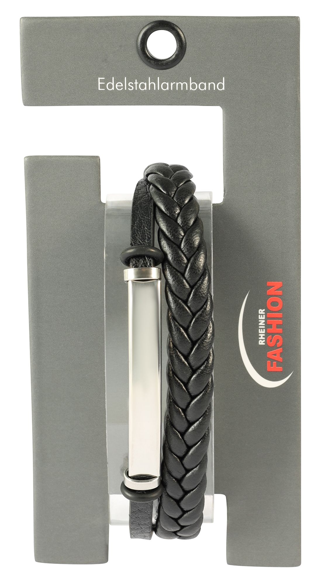 De "Niklas" armband maakt indruk met zijn moderne 2-laags look. De gevlochten streng van imitatieleer zorgt voor een robuuste en toch elegante look, terwijl de tweede streng, eveneens van imitatieleer, opvalt door zijn graveerplaatje. Dit graveerplaatje (4,1 x 0,7 cm) biedt ruimte voor persoonlijke details zoals namen, data of speciale woorden - er zijn geen grenzen aan je creativiteit.