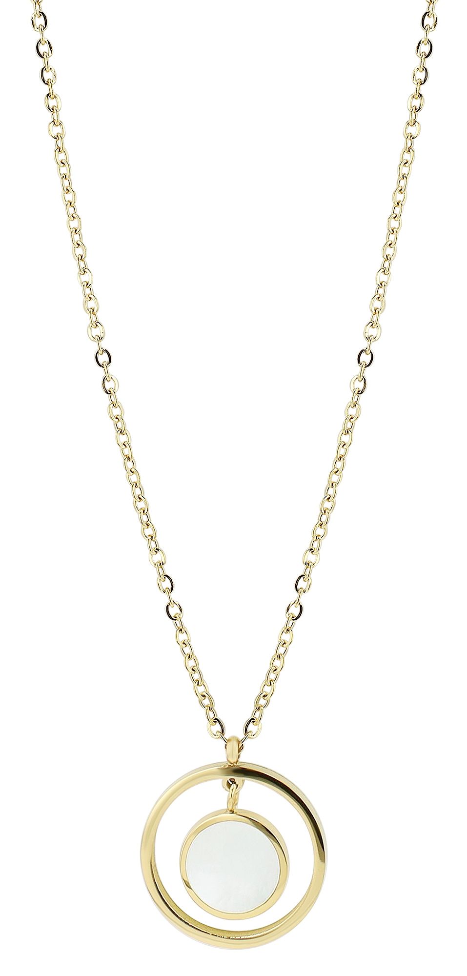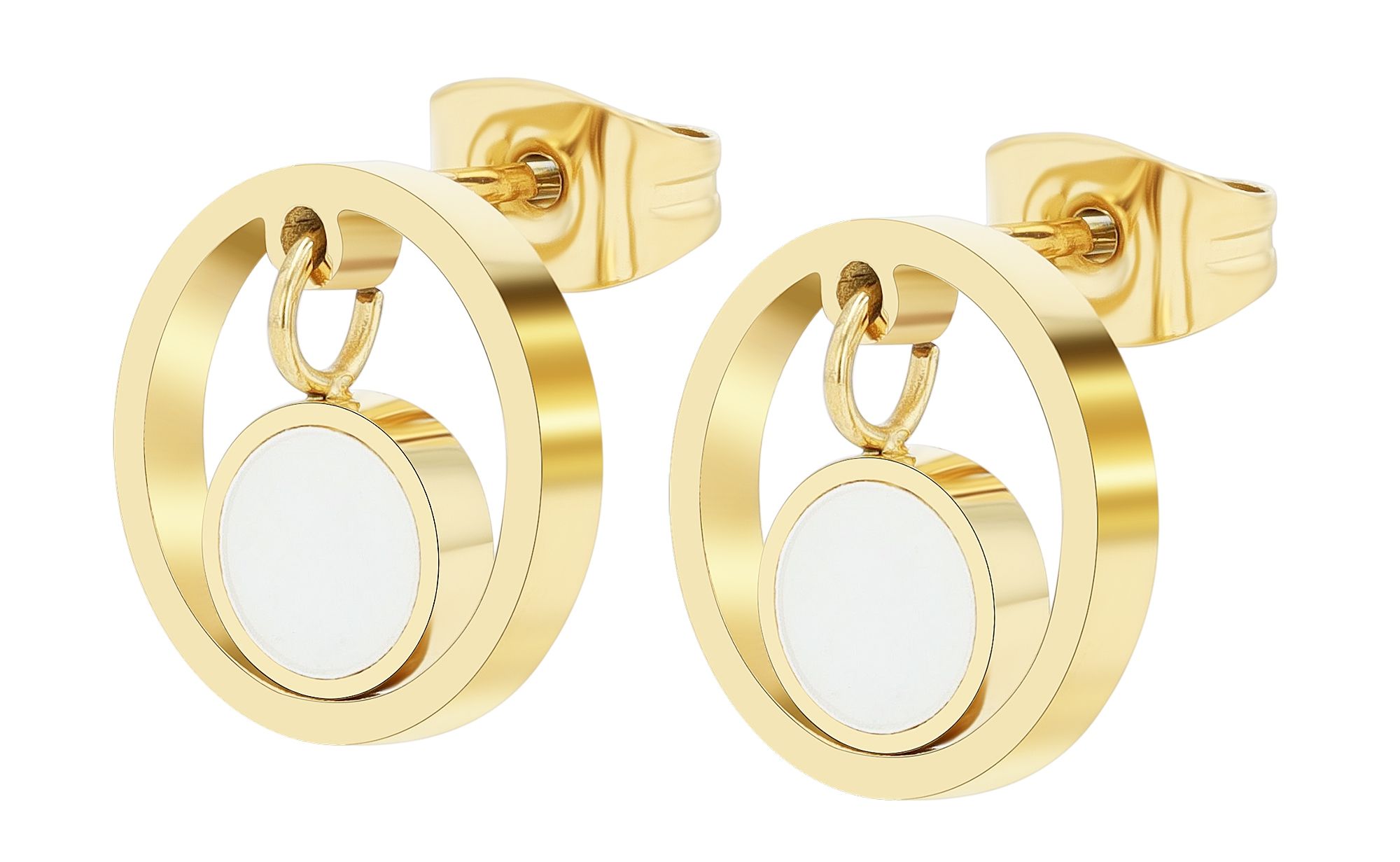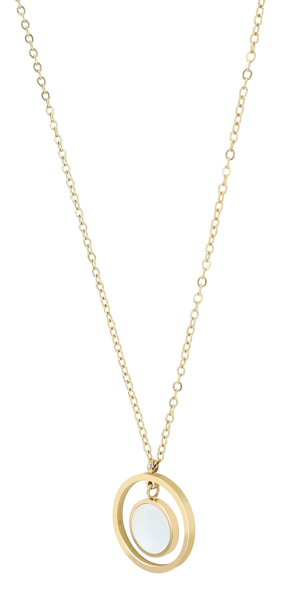 Productinformatie ""Niva", Akzent Edelstahl Schmuckset, Halskette und Ohrsteckern mit Perlmutt, goldfarben"