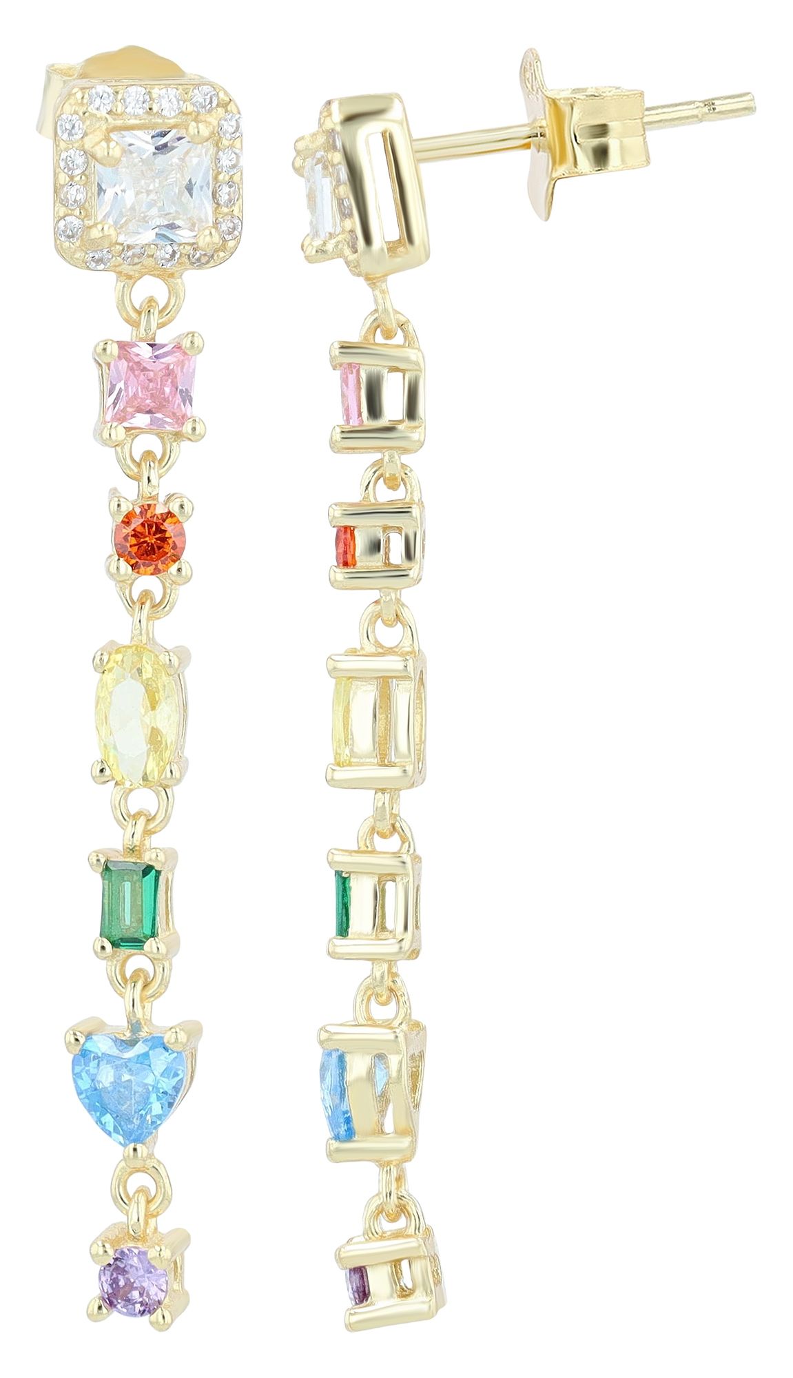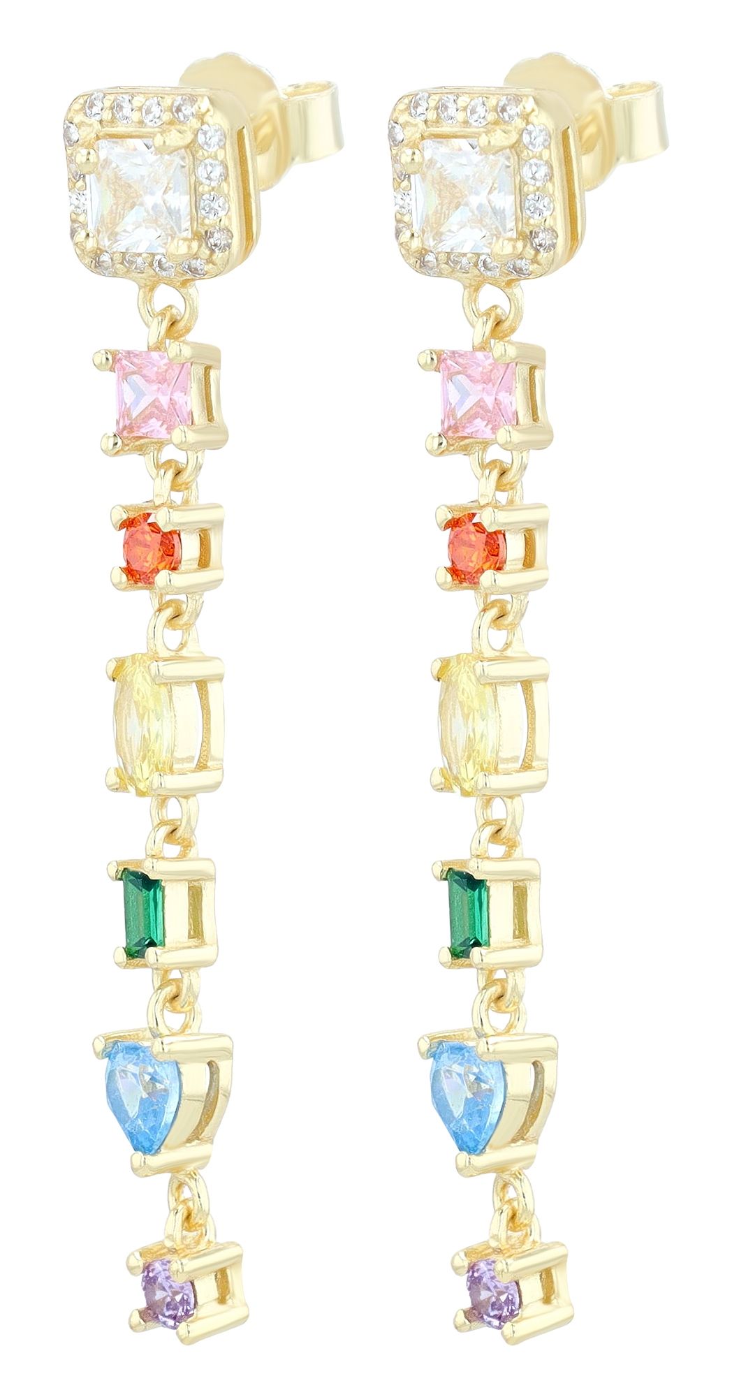 Speels, elegant en kleurrijk sprankelend, "Nurduha" is een prachtige oorbel van 925 gerhodineerd echt zilver, versierd met 44 glinsterende zirkonia stenen in verschillende maten, vormen en kleuren. Het knopgedeelte van dit betoverende oorsieraad is voorzien van een grote, heldere, vierkante zirkonia steen, omringd door andere kleine, rondgeslepen heldere zirkonia stenen. De knop en de hangende elementen zijn open aan de achterkant en zijkanten om de hoeveelheid licht te maximaliseren waardoor de stenen prachtig fonkelen. Op het breedste punt, ter hoogte van de oorsteker zelf, is het oorsieraad 0,65 cm breed en 0,4 cm dik; alle andere hangende elementen zijn kleiner en vormen samen met de oorsteker een totale lengte van 4,3 cm. Wat "Nurduha" bijzonder fascinerend maakt, zijn de verschillende kleuren, vormen en slijpvormen van de zirkonia steentjes. Dit speciale kenmerk geeft de oorsteker zijn speelse karakter en zal je ook op elke festiviteit tot iets heel bijzonders maken. Deze betoverende blikvanger is verkrijgbaar in elegant geelgoud en glanzend zilver.