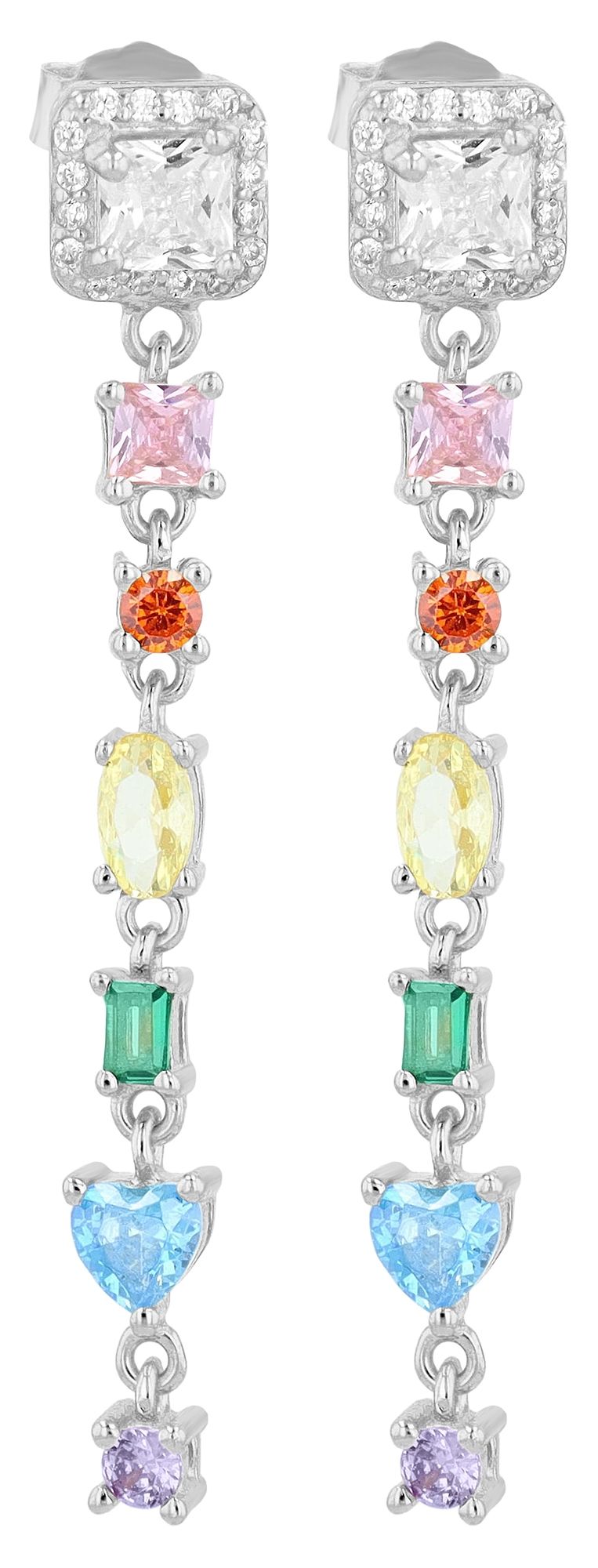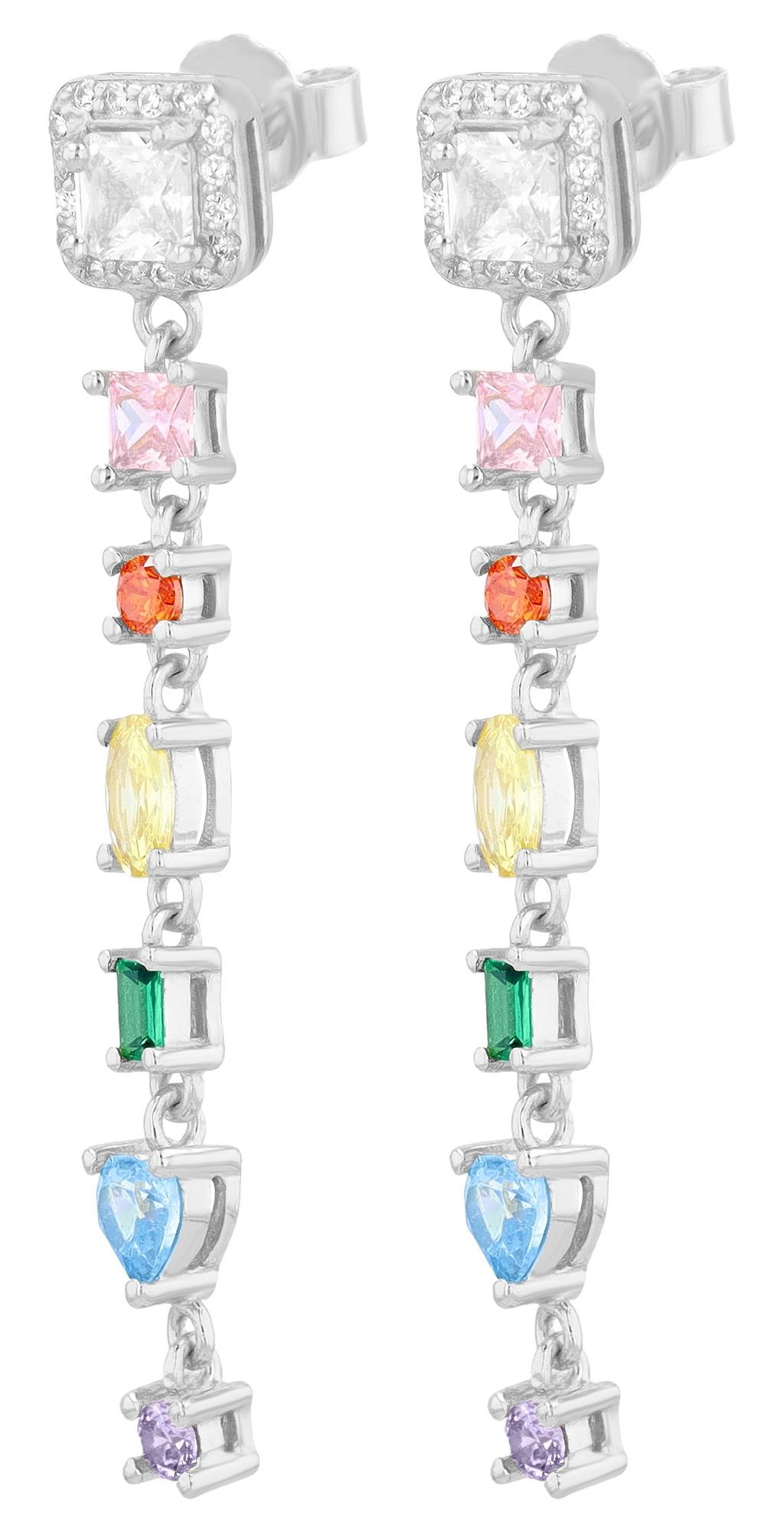 Speels, elegant en kleurrijk sprankelend, "Nurduha" is een prachtige oorbel van 925 gerhodineerd echt zilver, versierd met 44 glinsterende zirkonia stenen in verschillende maten, vormen en kleuren. Het knopgedeelte van dit betoverende oorsieraad is voorzien van een grote, heldere, vierkante zirkonia steen, omringd door andere kleine, rondgeslepen heldere zirkonia stenen. De knop en de hangende elementen zijn open aan de achterkant en zijkanten om de hoeveelheid licht te maximaliseren waardoor de stenen prachtig fonkelen. Op het breedste punt, ter hoogte van de oorsteker zelf, heeft het oorsieraad een breedte van 0,65 cm en een dikte van 0,4 cm; alle andere hangende elementen zijn kleiner en vormen samen met de oorsteker een totale lengte van 4,3 cm. Wat "Nurduha" bijzonder fascinerend maakt, zijn de verschillende kleuren, vormen en slijpvormen van de zirkonia steentjes. Dit speciale kenmerk geeft de oorsteker zijn speelse karakter en zal je ook op elke festiviteit tot iets heel bijzonders maken. Deze betoverende blikvanger is verkrijgbaar in elegant geelgoud en glanzend zilver.