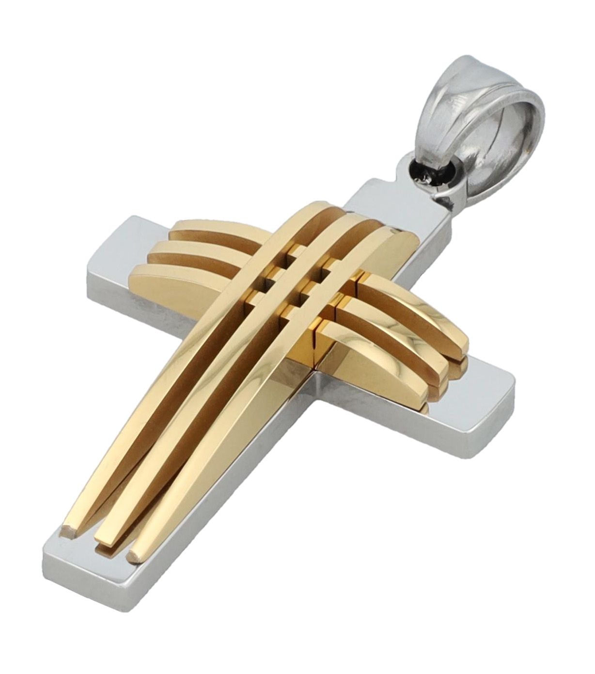 Productinformatie ""Nyrelle" Anhänger Kreuz aus Edelstahl, ionenplattiert & bicolor (silber- u. goldfarben)"