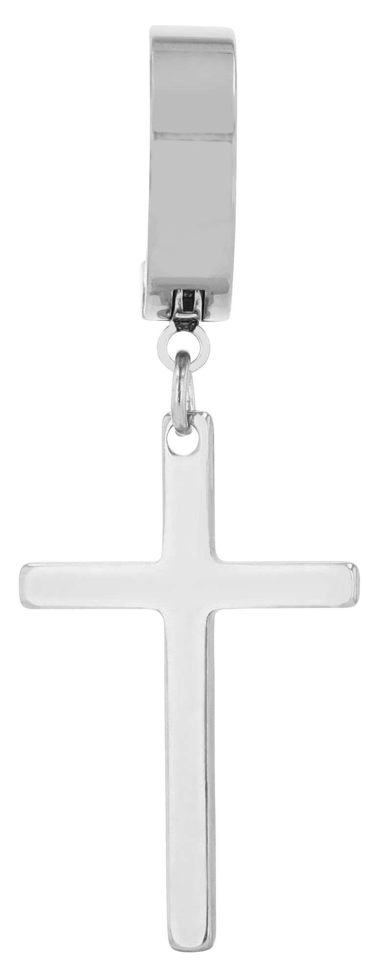 Met een diameter van 9 mm, een breedte van 4 mm en een dikte van 2 mm is de creool compact en comfortabel om te dragen. Het middelpunt van deze single hoop oorbel is de kruis hanger, 15 x 16 x 1 mm, die nonchalant zwaait bij elke beweging en het sieraad een onmiskenbare dimensie geeft.