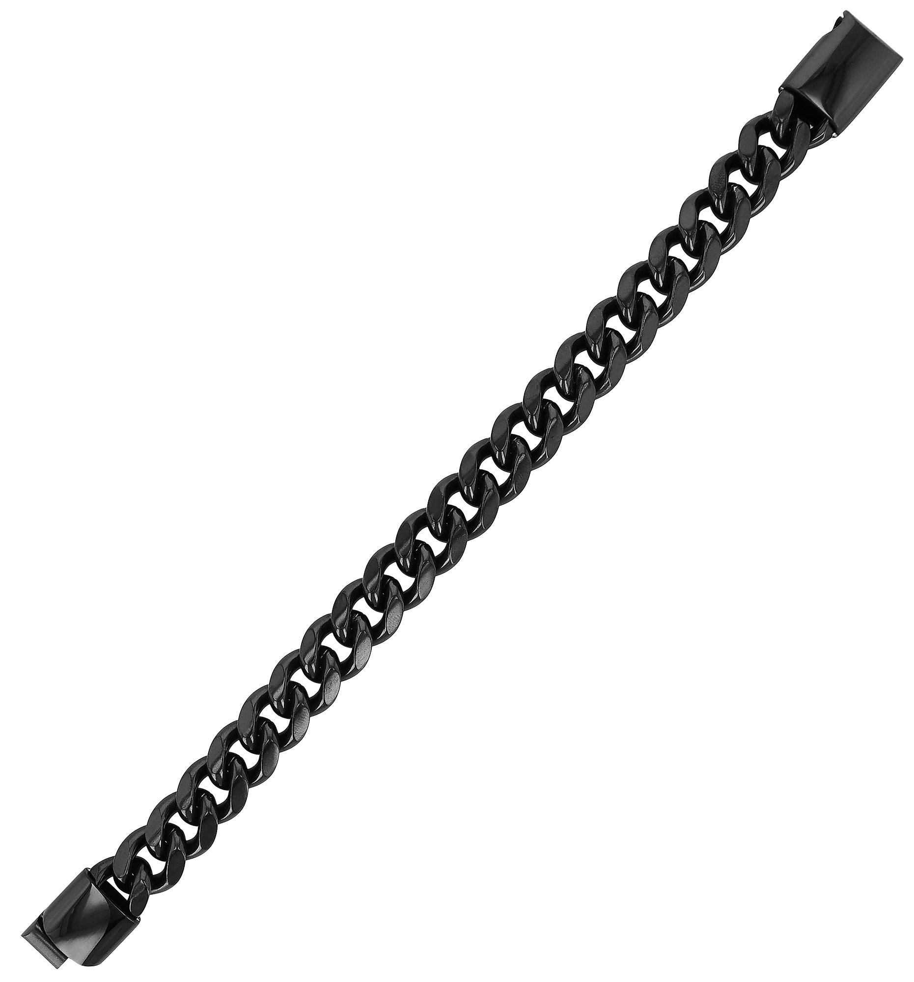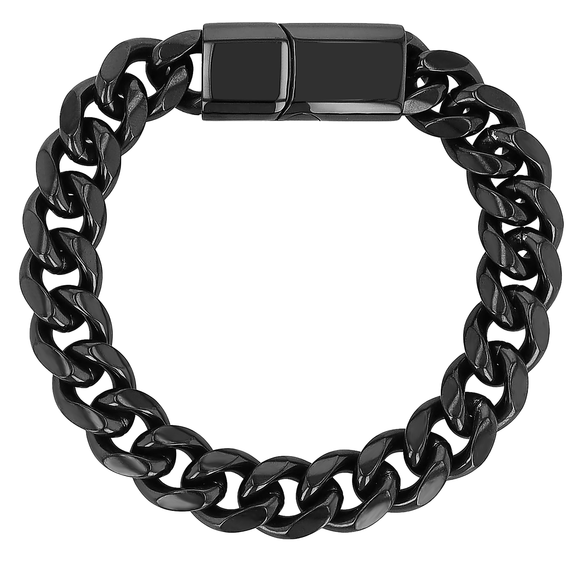 Verkrijgbaar in zilverkleurige, zwarte of goudkleurige plating, past deze armband bij elke stijl.