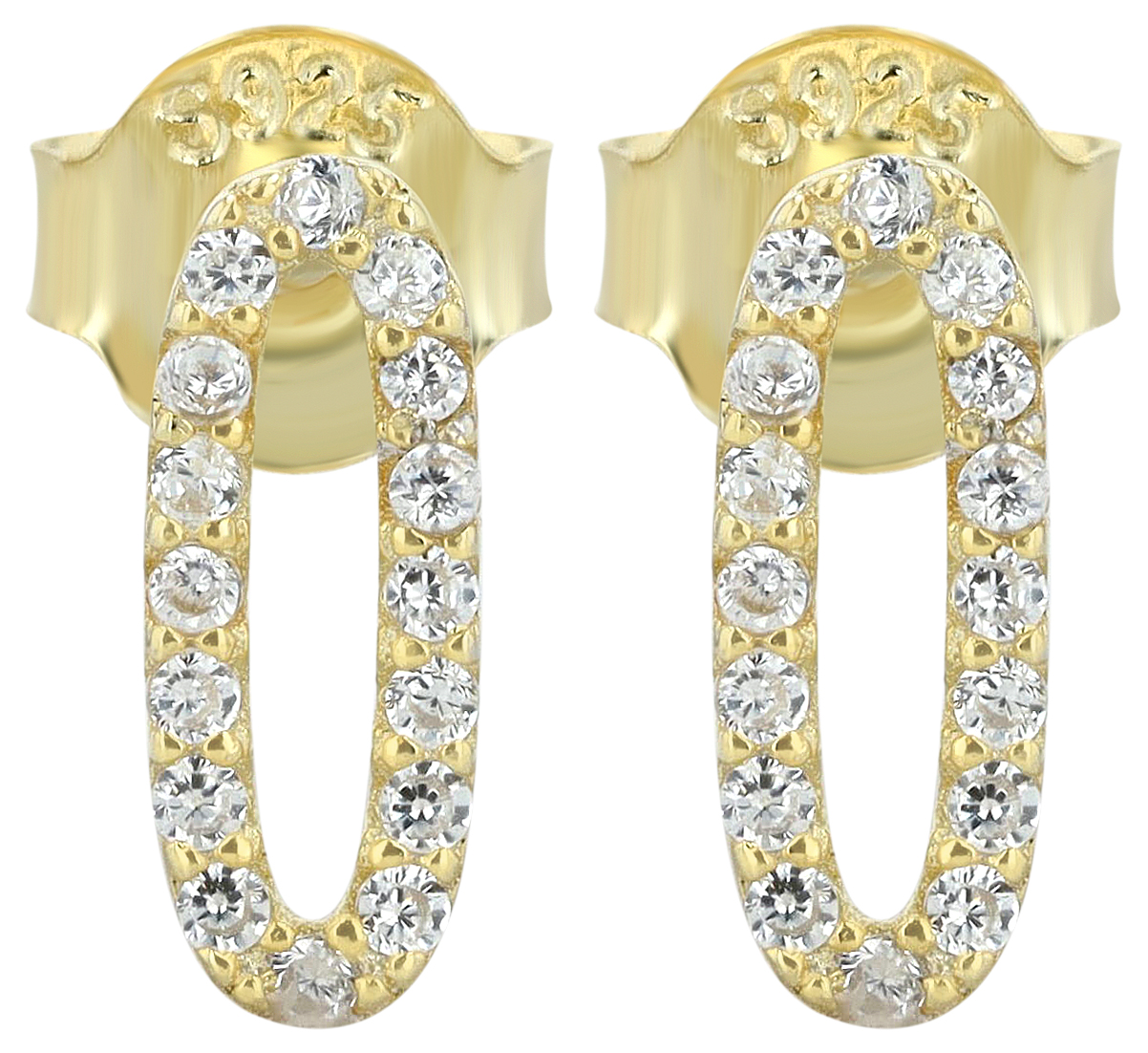 Productinformatie ""Olga" 925/- echt zilveren oorbellen - ovaal, zirkoon, verguld"