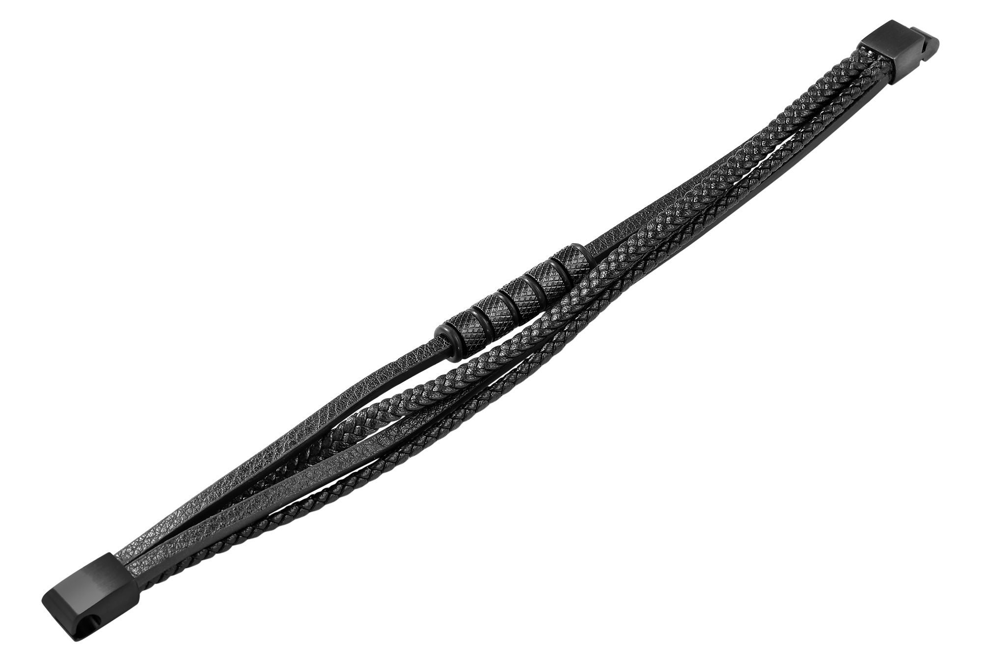 Productinformatie ""Owen" armband van imitatieleer met roestvrij stalen elementen, geïoniseerd, zwart, 21 cm"
