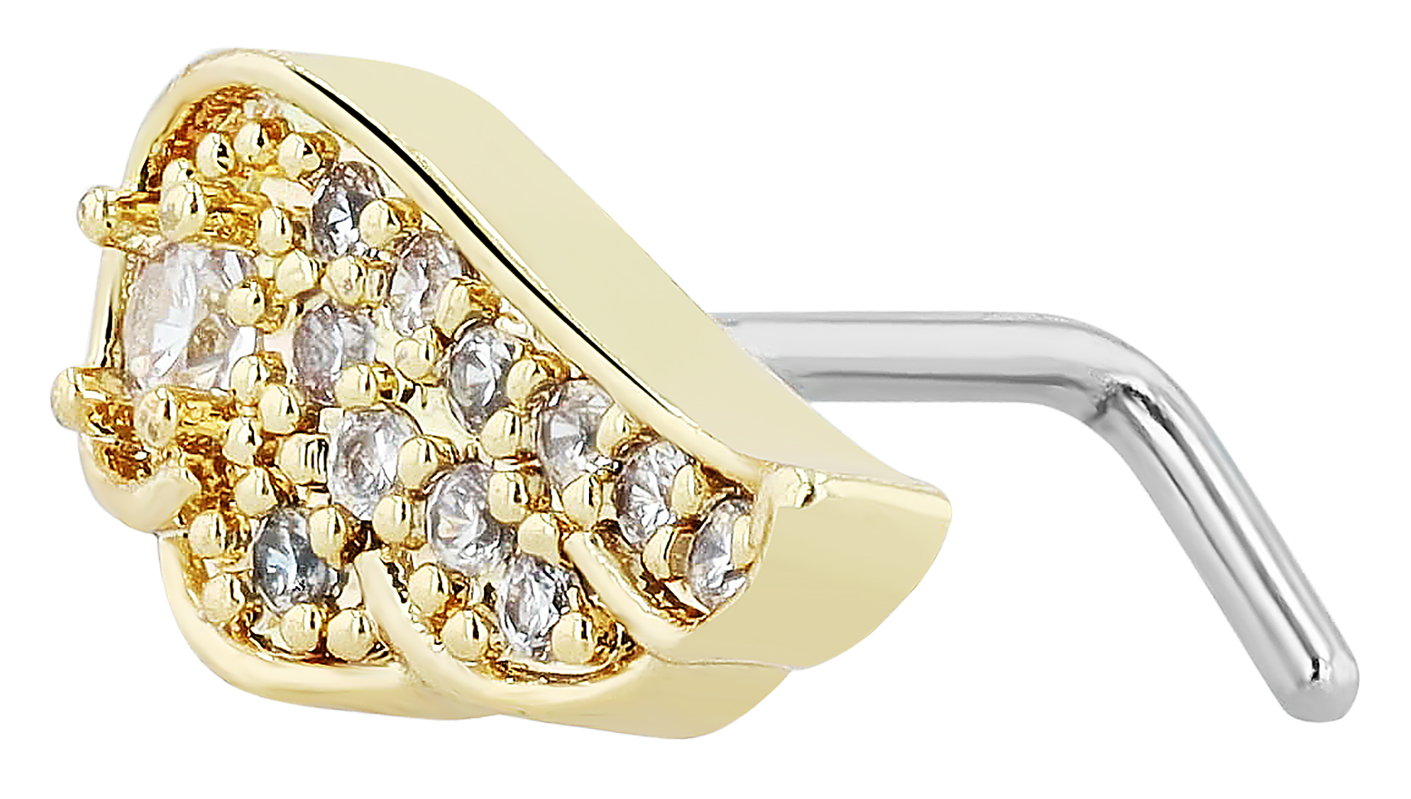 Productinformatie ""Panja" roestvrijstalen neuspiercing, L-vormig, vleugels, Ø 0,9 mm/ staaflengte 7,5 mm, goudkleurig"