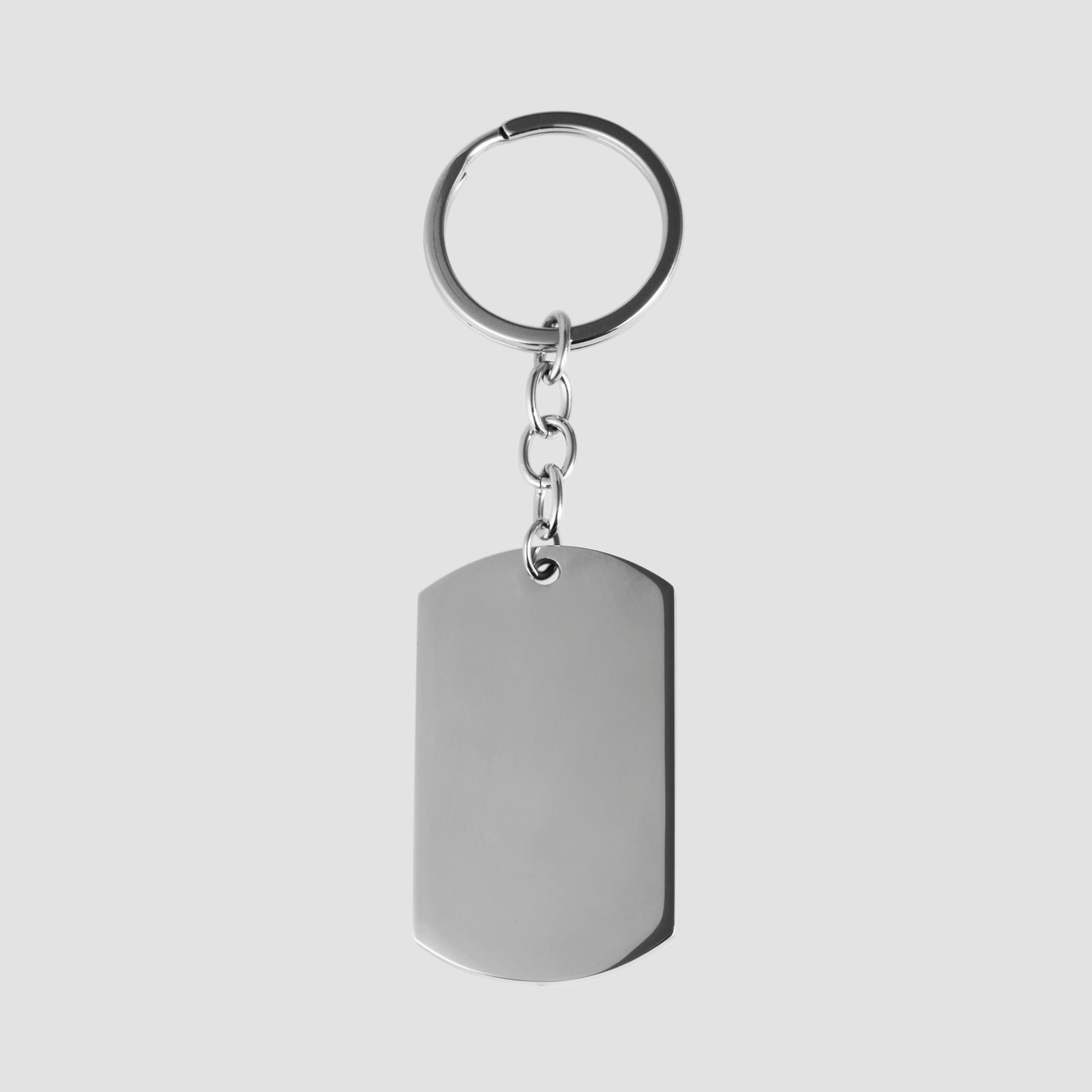 De Akzent dog tag sleutelhanger is gemaakt van roestvrij staal. De eenvoudige maar moderne hanger kan worden aangepast met allerlei gravures en is ideaal als gepersonaliseerd cadeau. De sleutelhanger is 50 mm lang, 29 mm breed en 2 mm dik. Sleutels of andere voorwerpen kunnen gemakkelijk worden bevestigd aan de ronde sleutelhanger met een diameter van 25 mm.