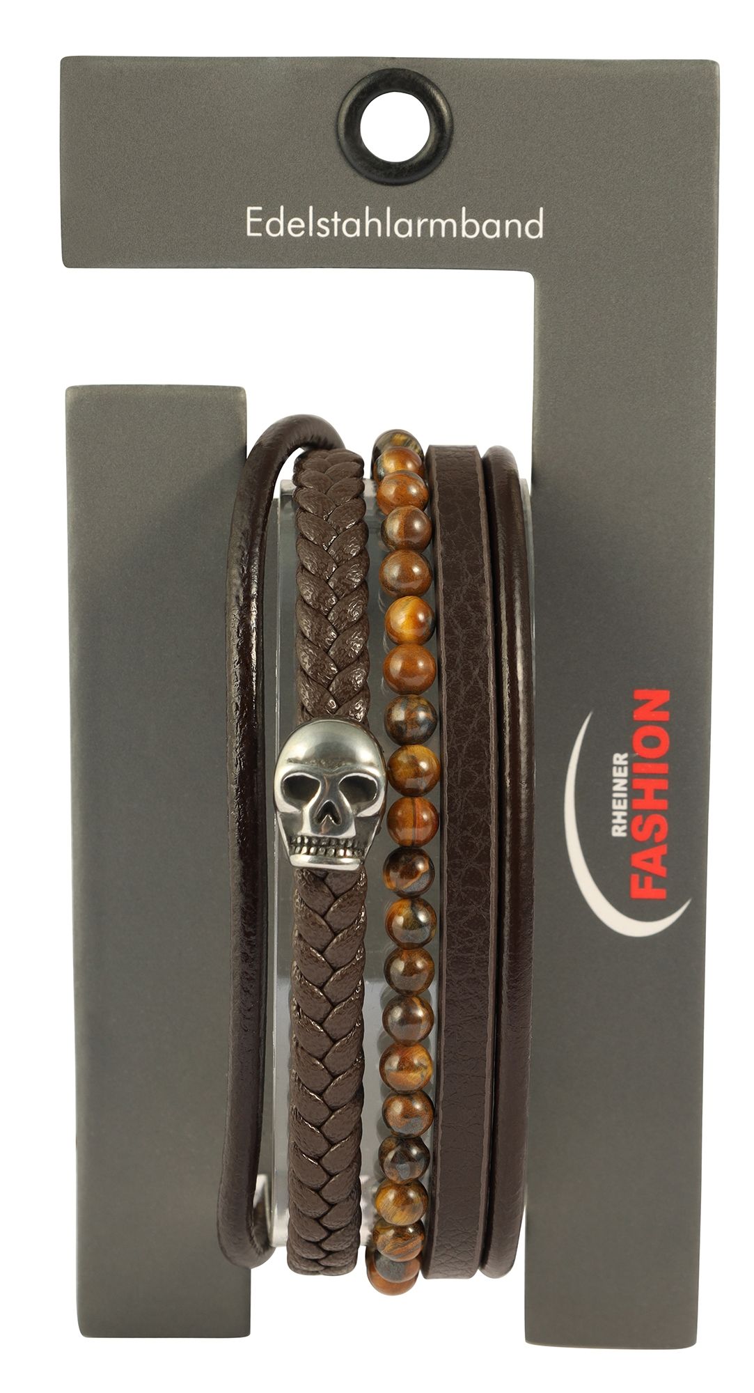 Productinformatie ""Perry", Totenkopf, 23 cm, Armband aus Lederimitat, mit braunem Tigerauge, 4-VE"