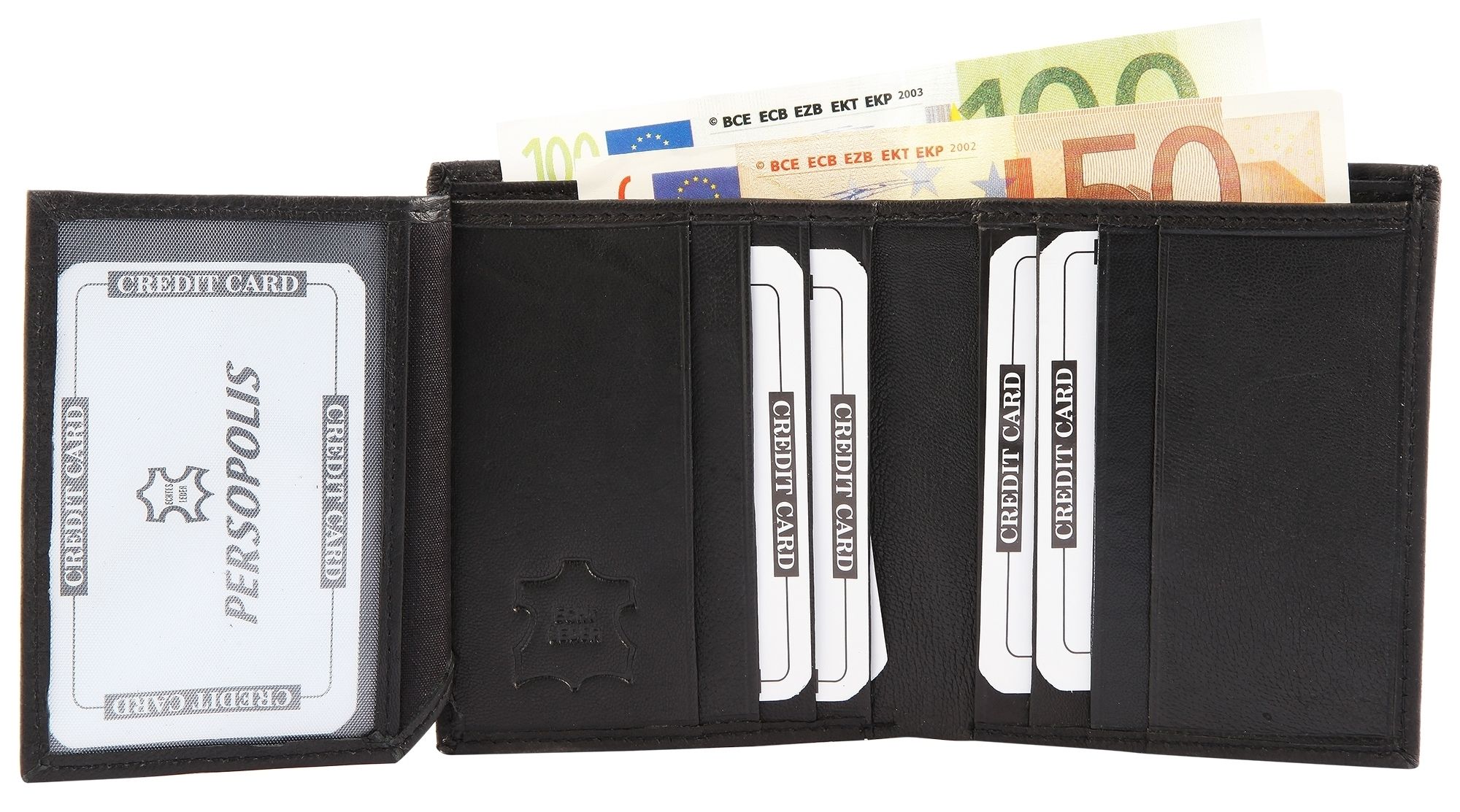 Productinformatie "Persopolis portemonnee van echt leer, staand formaat, zwart"