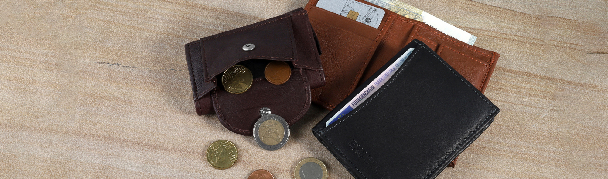 Excellanc Echtleder Mini-Geldbörse, schwarz