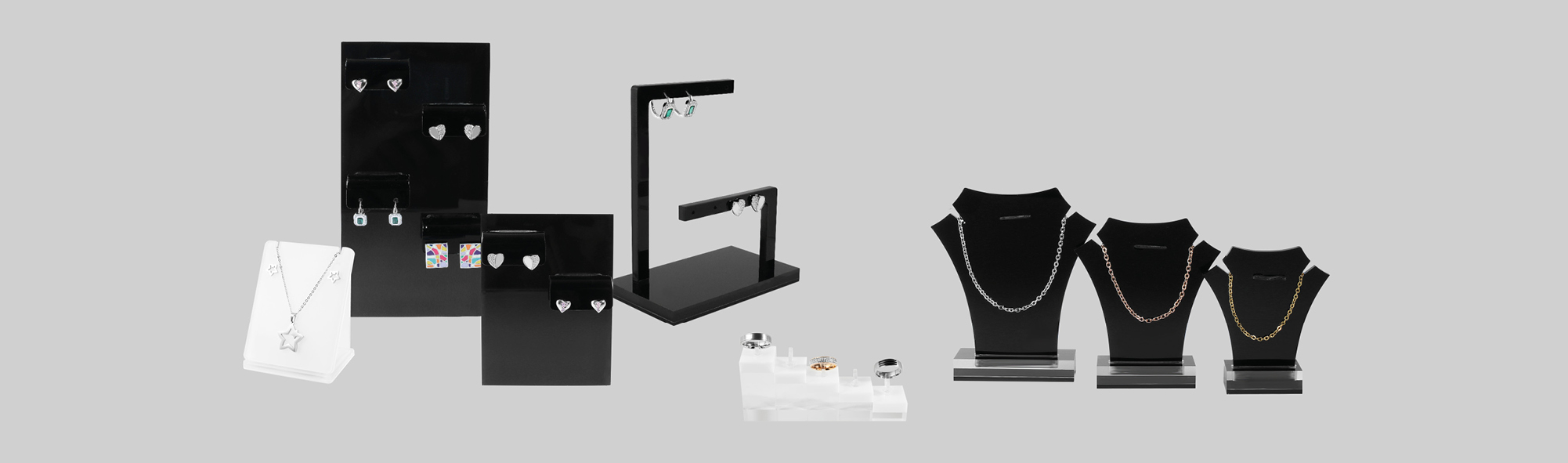 De displays zijn gemaakt van hoogwaardig acryl/kunststof en hebben een indrukwekkende glanzende afwerking. Het ontwerp is elegant en minimalistisch, zodat de aandacht altijd uitgaat naar de getoonde sieraden. De transparant/witte displaystandaard zorgt voor een discrete uitstraling die past bij elke sfeer en laat de kleuren van uw sieraden stralen.