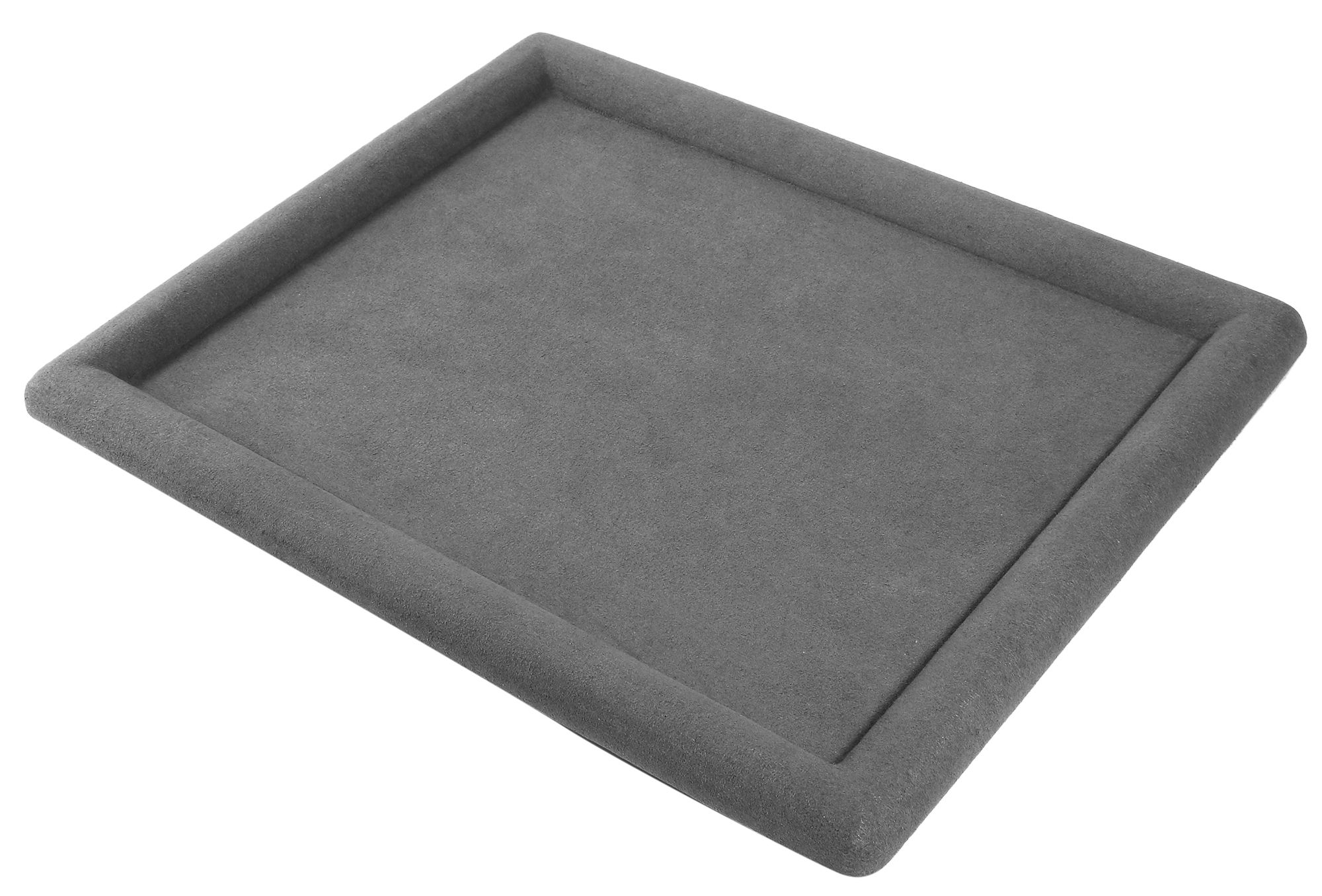 Productinformatie "Presentatietray, fluweel bekleed, 25 x 19,5 x 1,5 cm, grijs"