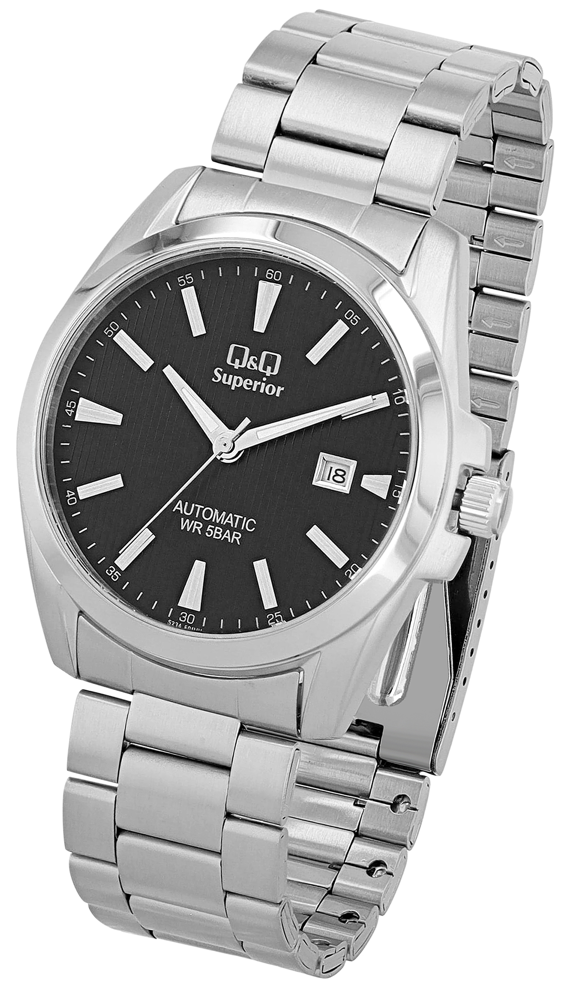 Productinformatie "Q&Q Automatik Herrenuhr, Edelstahl, silberfarben/schwarz, 5 ATM, Ø 42 mm"