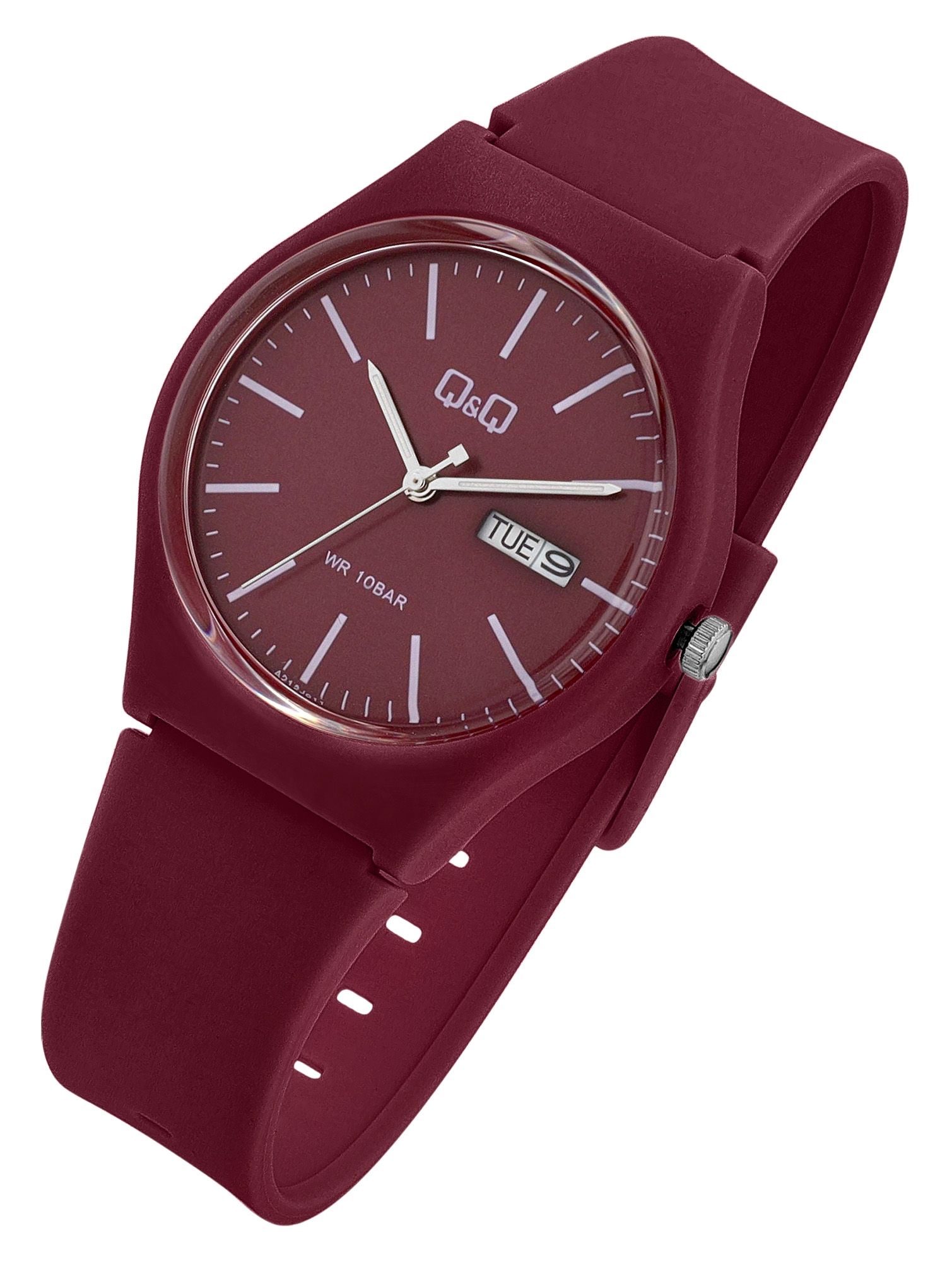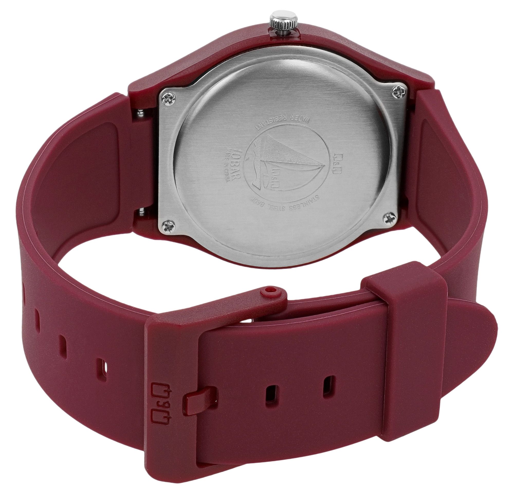 Productinformatie "Q&Q Damen-/ Jugenduhr mit Silikonarmband, 10 Bar, Ø 38 mm, bordeaux"