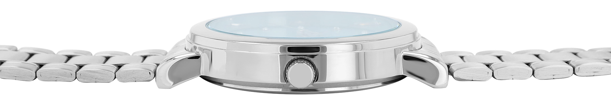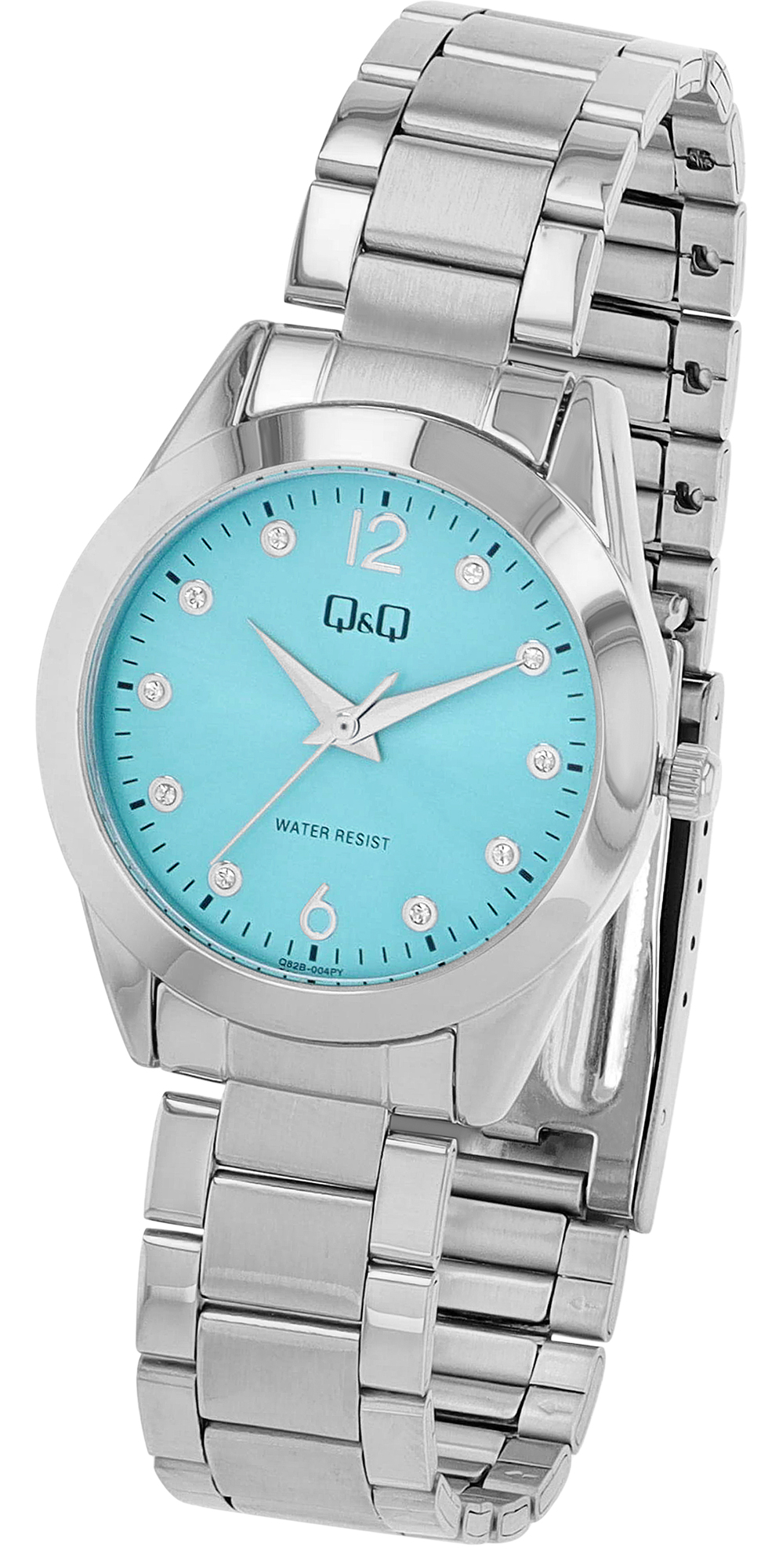 Productinformatie "Q&Q Damenuhr mit Edelstahlband, Ø 34 mm, silberfarbe/ türkis"