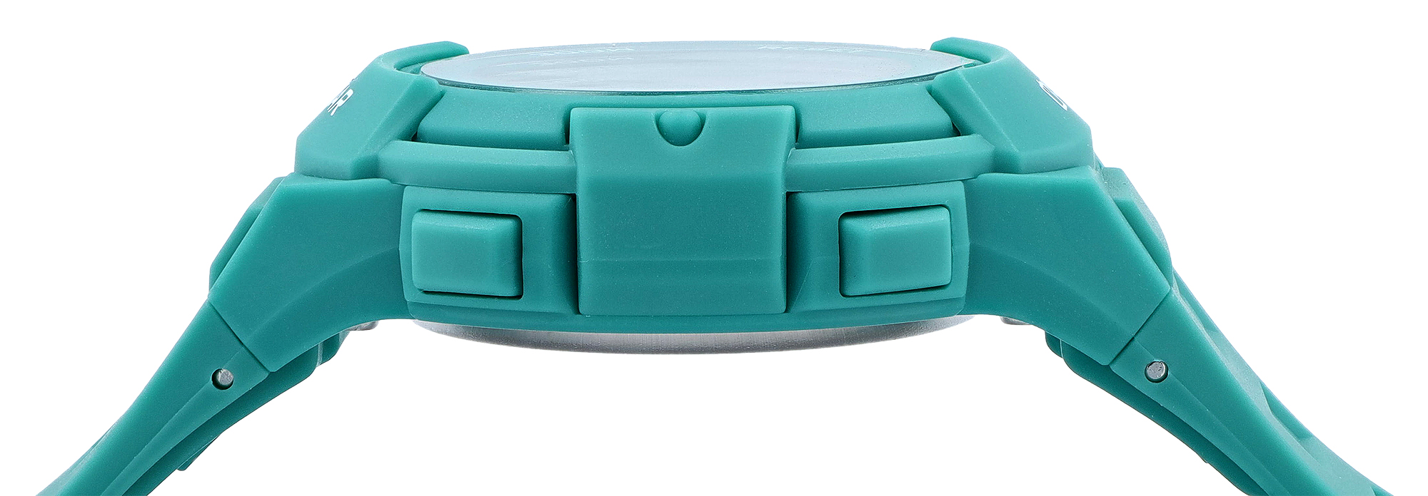 De slijtvaste kunststof kast in een frisse turquoise kleur geeft het horloge een dynamische look die ideaal is voor sport en vrije tijd.