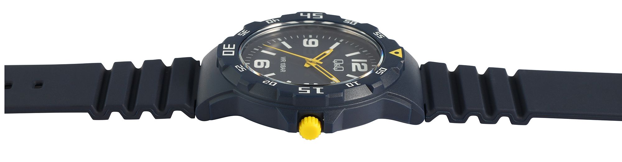 Dit Q&Q - by Citizen Watch Co. LTD herenhorloge (by Citizen Watch & Co., LTD) is niet zomaar een uurwerk, maar een statement van avontuur en stijl. Voeg dit spannende polshorloge toe aan je assortiment en bied je klanten de mogelijkheid om hun persoonlijke stijl te benadrukken. Q&Q - by Citizen Watch Co. LTD, een merk dat staat voor kwaliteit en precisie, presenteert met dit horloge opnieuw een quartz uurwerk van hoge kwaliteit dat een betrouwbare tijdwaarneming garandeert. Voor de moderne avonturier biedt het horloge een waterdichtheid van 10 bar, wat betekent dat het zelfs geschikt is voor watersportactiviteiten.