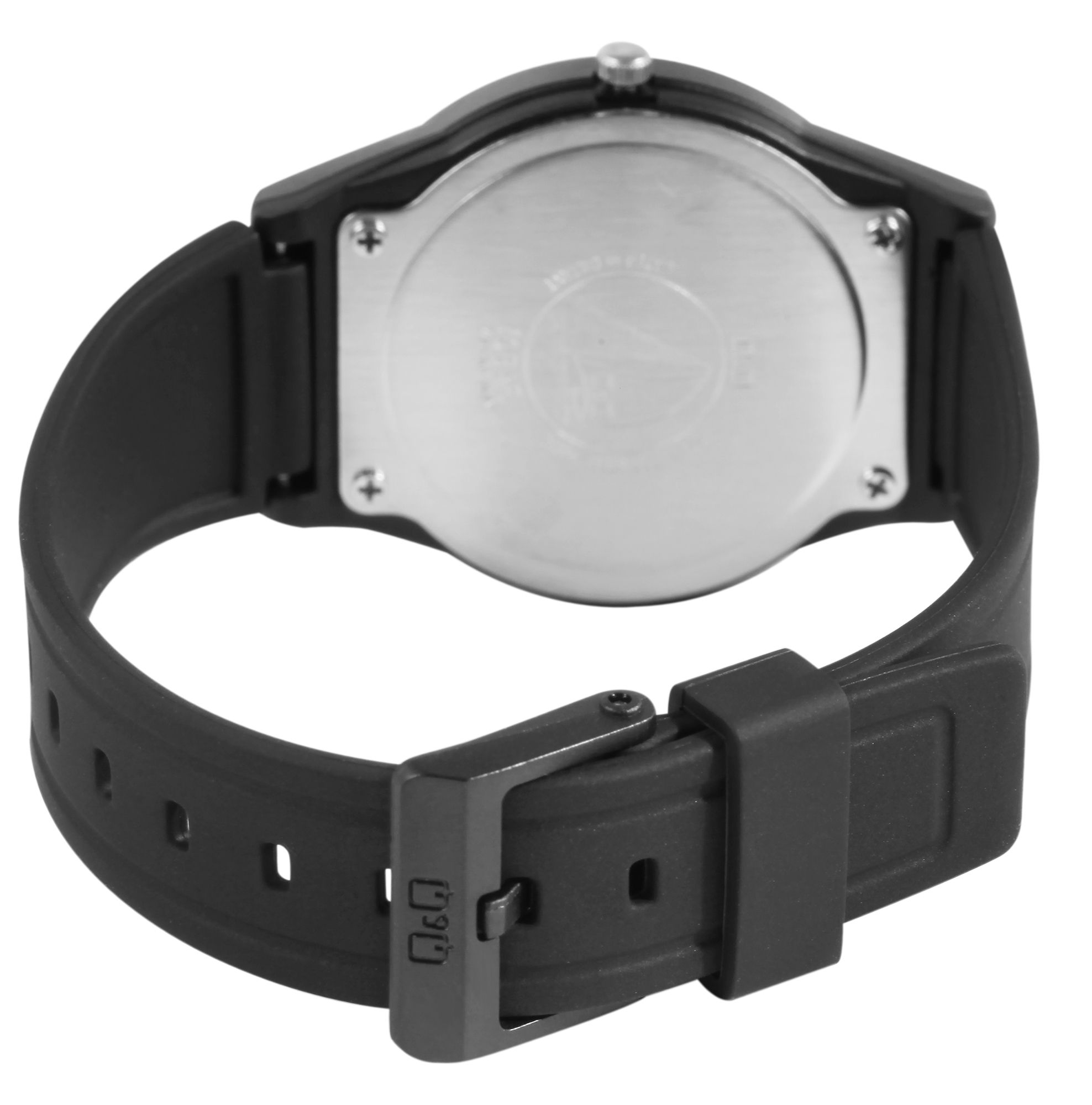 Die analoge 3-Zeiger Unisexarmbanduhr der Marke Q&Q - by Citizen Watch Co. LTD verfügt über ein hochwertiges und ganggenaues Quarzuhrwerk. Das Silikonarmband ist am Anstoß 18 mm breit und lässt sich mit einer Dornschließe öffnen und schließen. Die Gesamtlänge der Uhr beträgt 25 cm. Das Kunststoffgehäuse mit Kunststoffglas hat eine Abmessung von 38 mm im Durchmesser und einer Gehäusehöhe von 10 mm. Der Gehäuseboden ist aus Edelstahl gefertigt und mit vier Edelstahlschrauben am Gehäuse befestigt. Die Besonderheit bei dieser Uhr ist das Zifferblatt, welches je nach Lichteinfluss und Reflexion unterschiedliche Farbeffekte ausweist. Dabei lässt sich die Uhrzeit aufgrund der Ziffern im arabischen Stil ideal ablesen. Des Weiteren bietet die Armbanduhr durch das weiche Silikonarmband einen angenehmen Tragekomfort und lässt sich aufgrund der pflegeleichten Materialien besonders leicht reinigen. Diese Armbanduhr überzeugt auf ganzer Linie! Die hautfreundlichen Materialien, die Wasserdichtigkeit von 10 ATM und das sportive Design lassen diesen Zeitmesser zur perfekten Uhr für Jung und Alt werden.