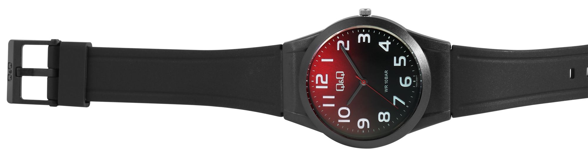 Productinformatie "Q&Q Unisexuhr mit Silikonarmband, 10 Bar, schwarz/rot"