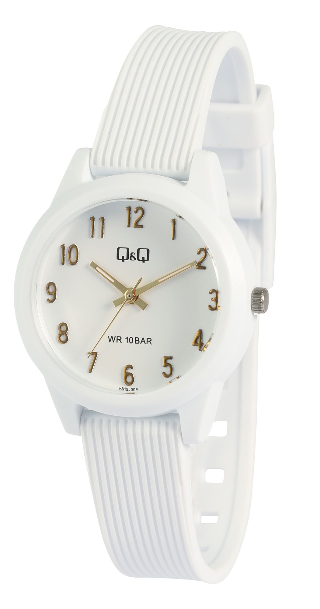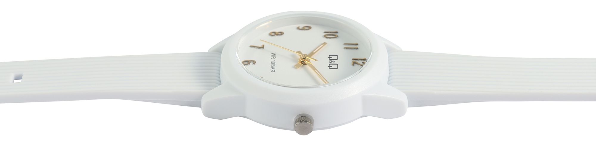 Productinformatie "Q&Q dames-/jeugdhorloge, kunststof band, 10 ATM, Ø 32 mm, wit"