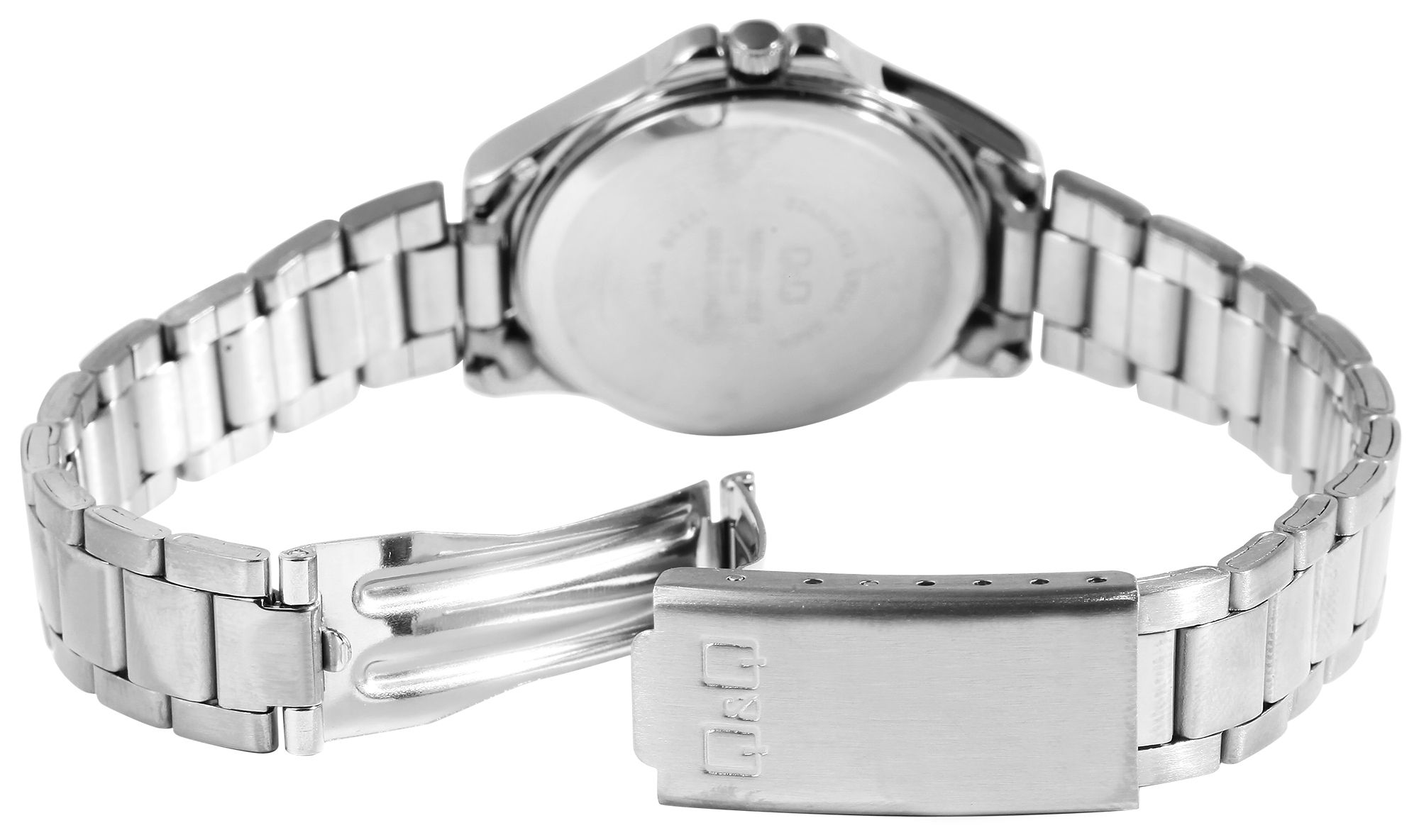 Productinformatie "Q&Q dameshorloge met roestvrijstalen armband, 3 bar, zilverkleurig/zwart"