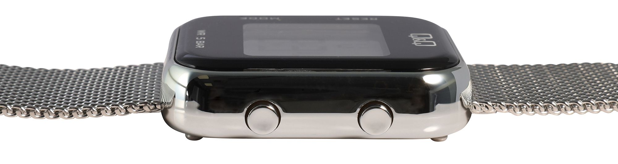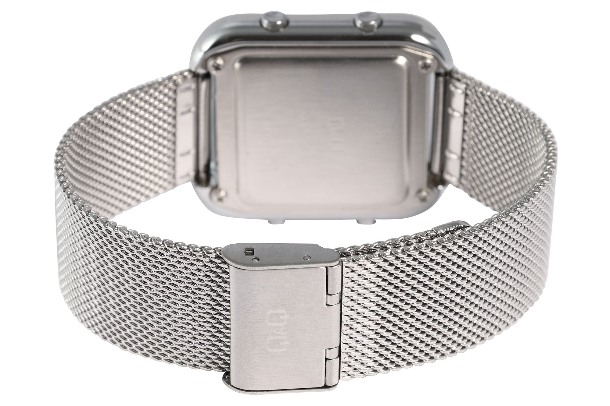Dit veelzijdige Q&Q - by Citizen Watch Co. LTD digitale horloge voor dames is niet alleen mooi om te zien dankzij de stevige zilverkleurige kunststof kast met roestvrijstalen achterkant en de zilverkleurige mesh band met vouwsluiting, maar is ook waterbestendig tot een diepte van 50 meter en een voordeel voor diverse sportieve activiteiten dankzij de ingebouwde stopwatch.
