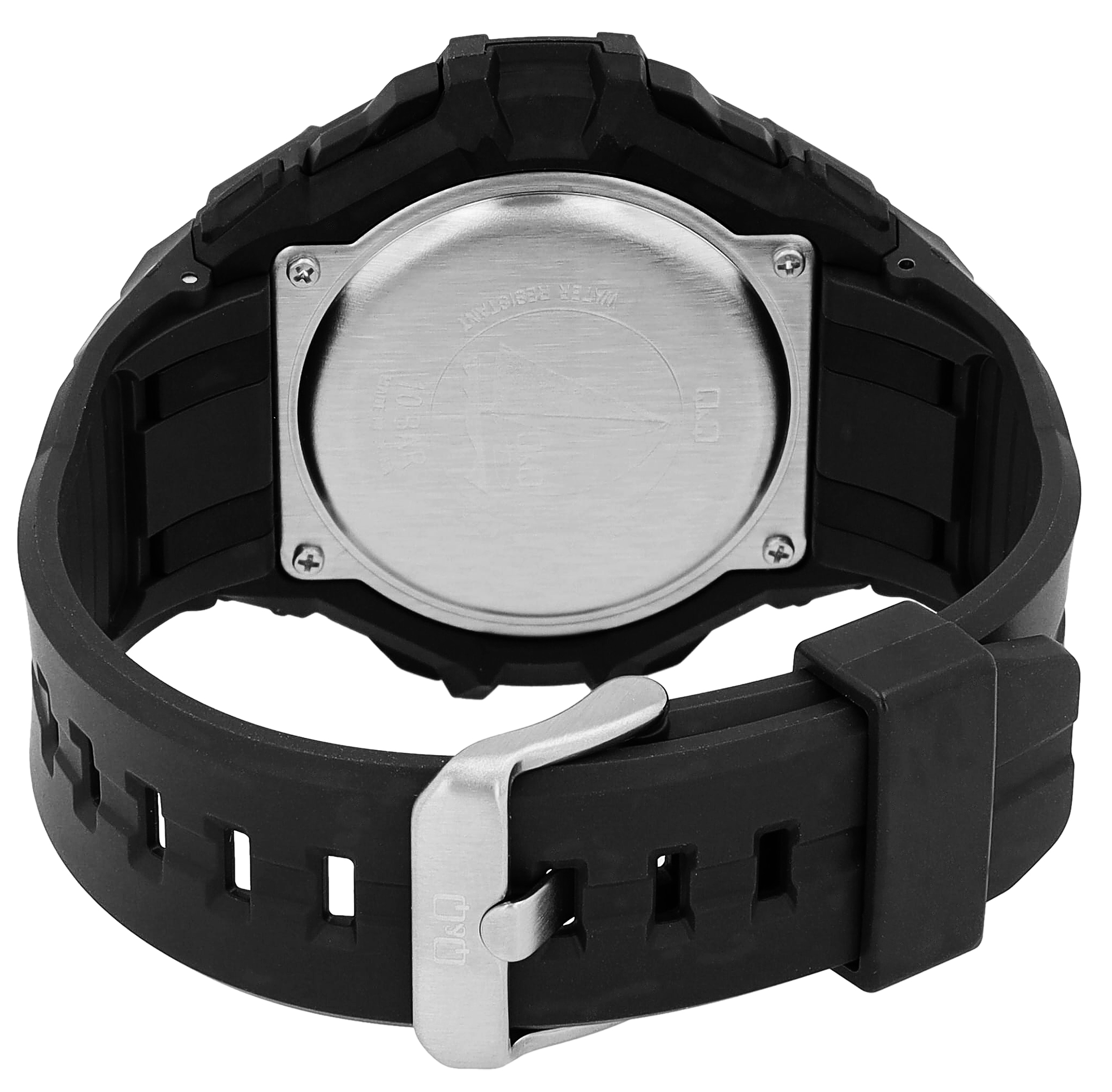 Dit sportieve horloge van Q&Q - by Citizen Watch Co. LTD biedt talloze functies in een compacte kunststof en roestvrijstalen kast: