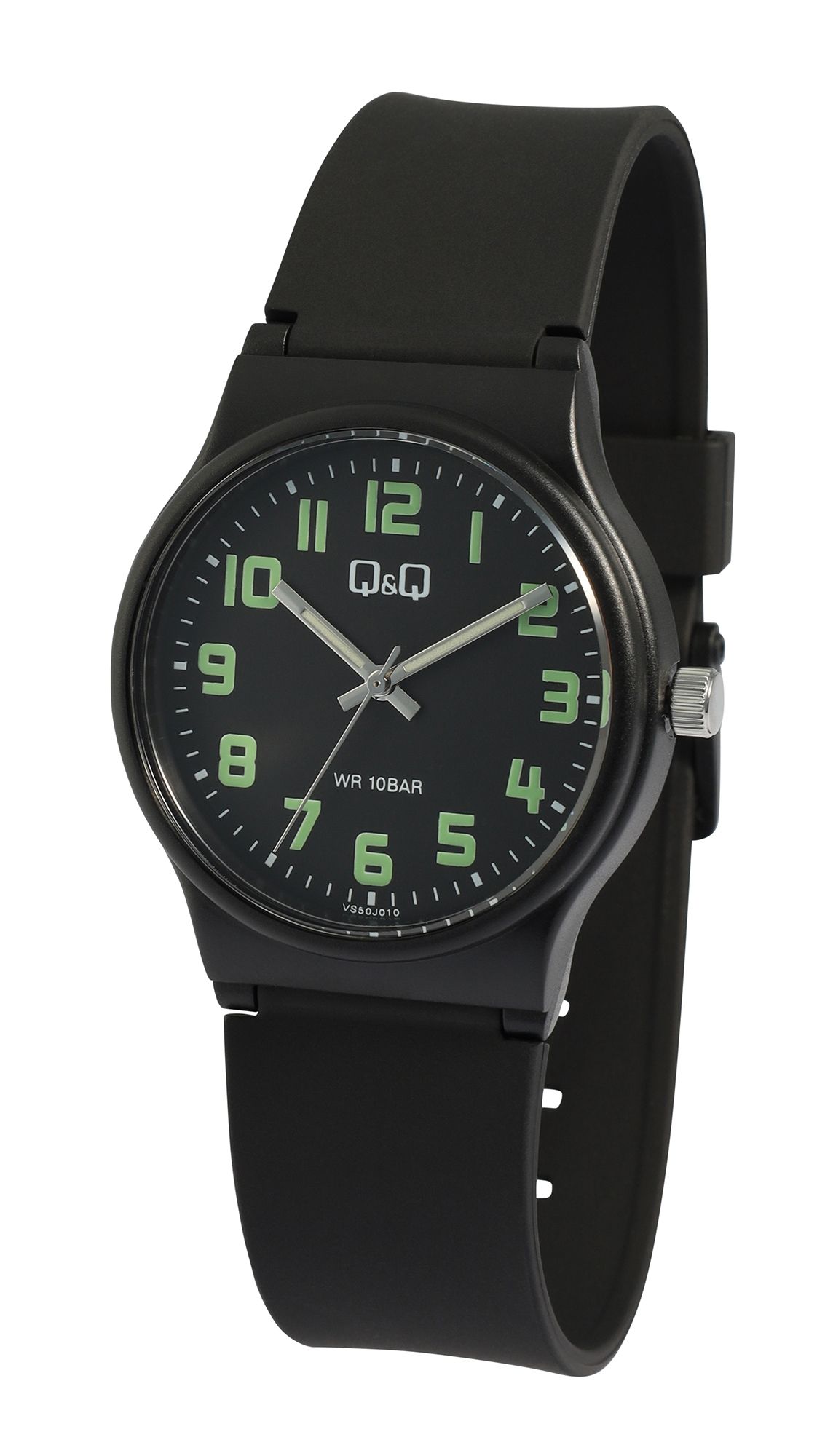 Dit veelzijdige Q&Q - by Citizen Watch Co. LTD horloge met siliconen band staat voor stijl en functionaliteit en is het perfecte accessoire voor elke gelegenheid, zowel voor dagelijks gebruik als voor sportieve activiteiten. De siliconen band is comfortabel om te dragen en zit goed om de pols. Dankzij de praktische gesp kan het horloge individueel worden afgesteld. De kast is gemaakt van robuust kunststof, terwijl de achterkant van de kast van roestvrij staal is, wat het horloge extra duurzaamheid geeft.