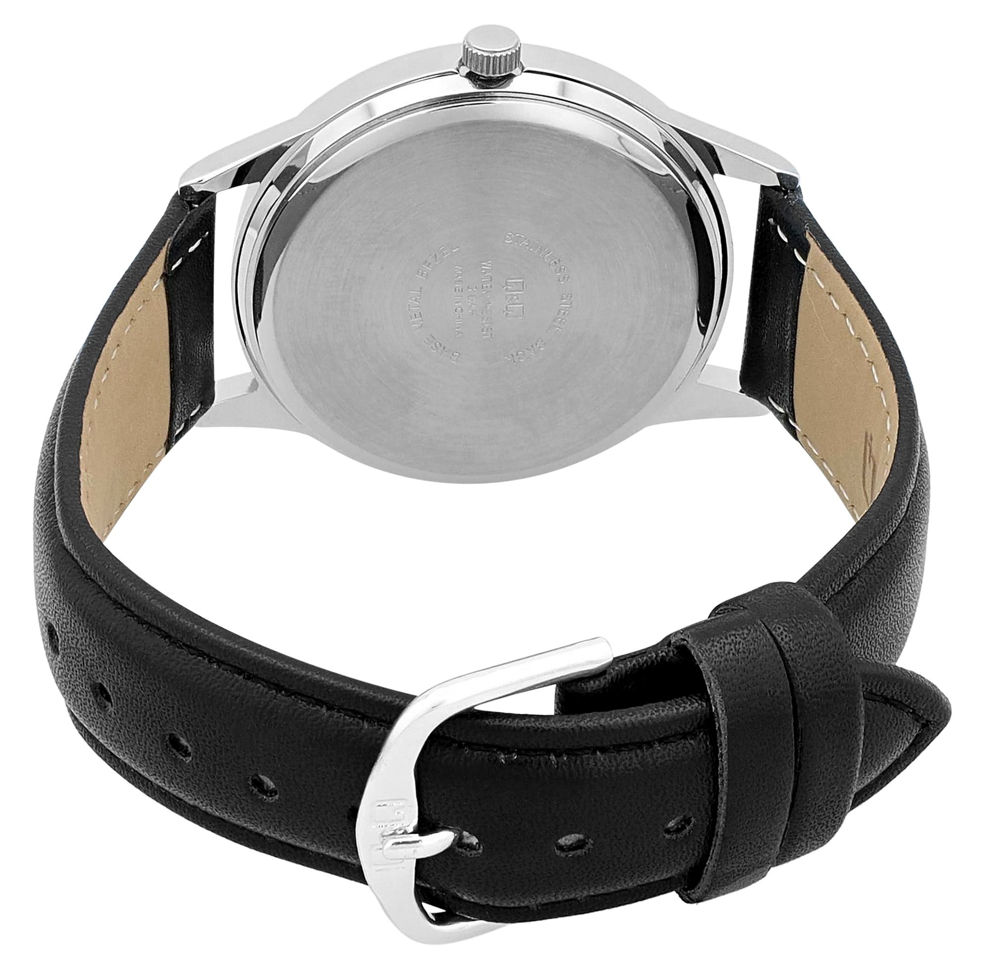 Productinformatie "Q&Q herenhorloge, imitatieleer, Ø 40 mm, zwart/zilverkleurig/wit"