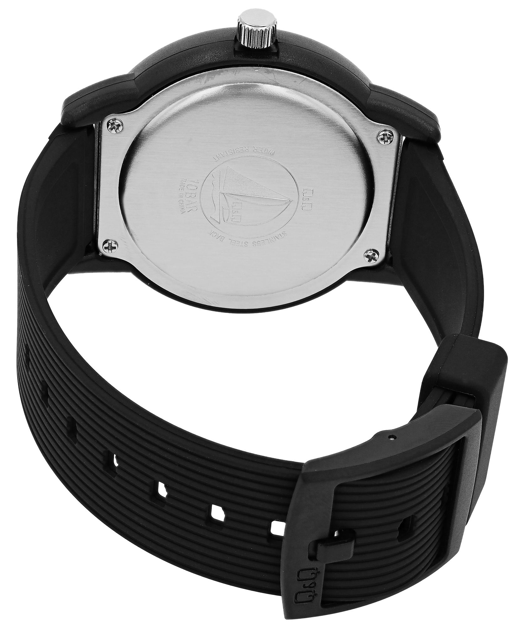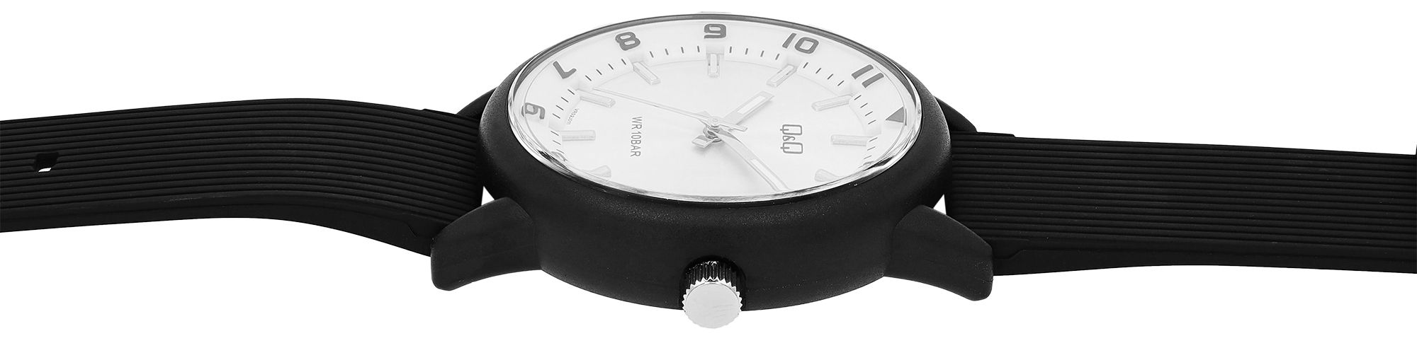 Productinformatie "Q&Q herenhorloge, kunststof, siliconen band, zwart/zilverkleurig, 10 ATM, Ø 42 mm"