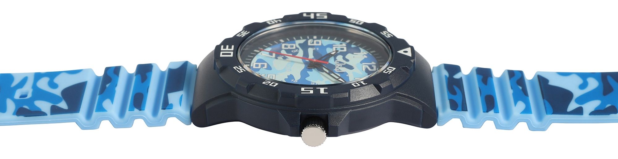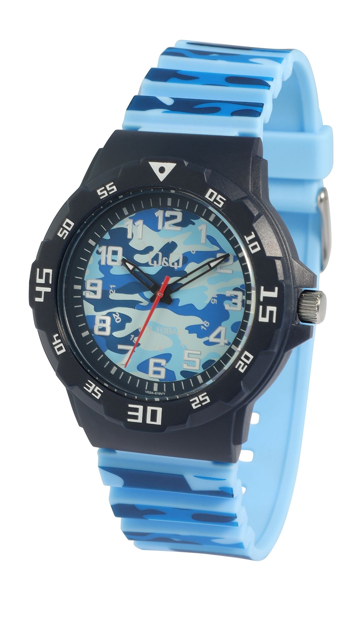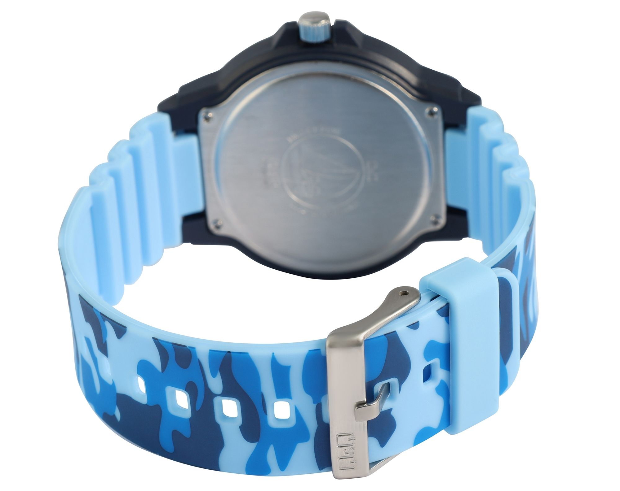 Productinformatie "Q&Q herenhorloge met kunststof band, 10 ATM, Ø 42 mm camouflage blauw"