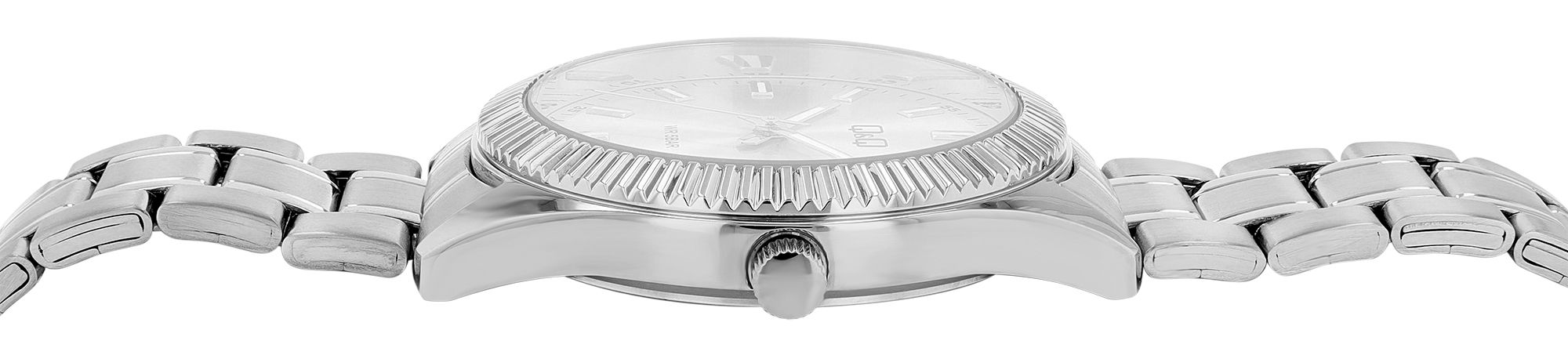 Het herenhorloge van het gerenommeerde merk Q&Q - by Citizen Watch Co. LTD maakt niet alleen indruk met zijn esthetische uiterlijk, maar ook met zijn hoogwaardige materialen en precisie. Binnenin dit horloge klopt het hart van een hoogwaardig quartz uurwerk. Dit garandeert niet alleen een nauwkeurige tijdweergave, maar ook een uitzonderlijke levensduur en betrouwbaarheid.
