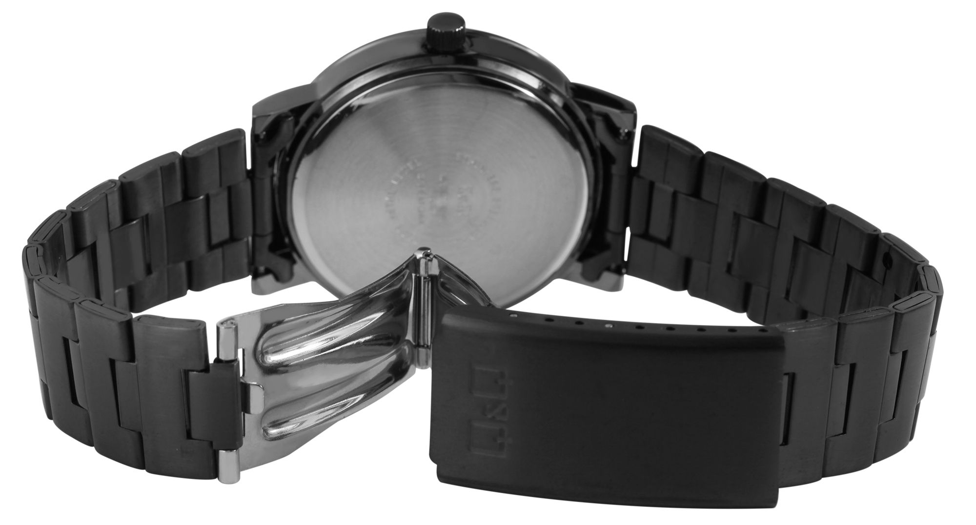 Productinformatie "Q&Q herenhorloge met roestvrijstalen armband, 5 bar, zwart"