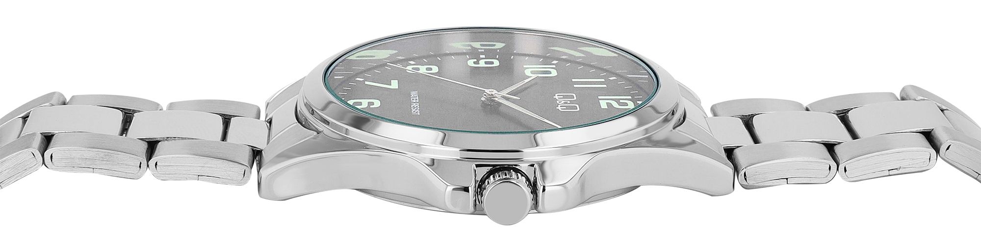 Het Q&Q - by Citizen Watch Co. LTD herenhorloge met een roestvrijstalen schakelband belichaamt tijdloze elegantie, precisie en functionaliteit in een chique jasje. Met zijn klassiek ontworpen wijzerplaat en duidelijke, zwarte Arabische cijfers is dit horloge een stijlvolle metgezel voor elke gelegenheid.