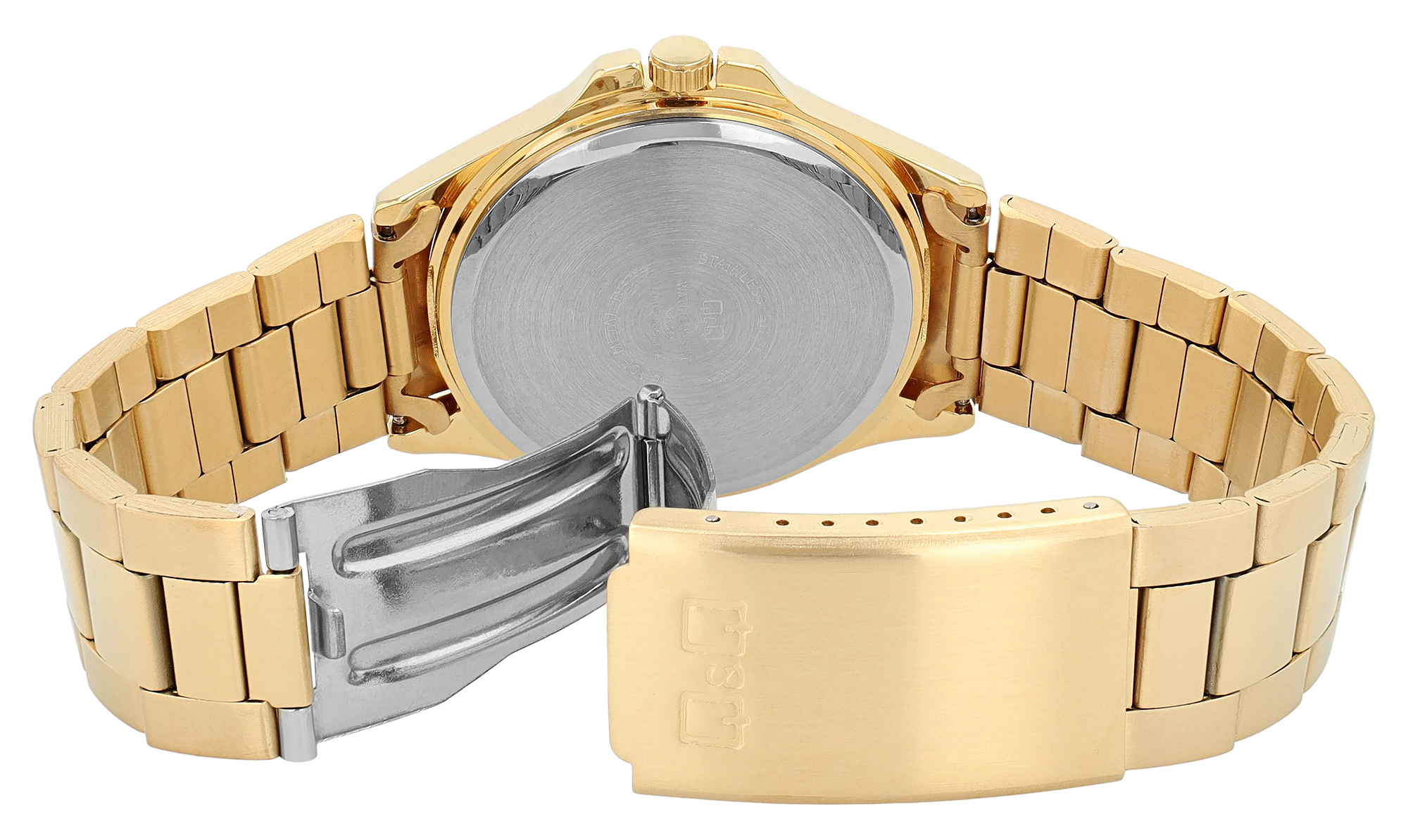 Productinformatie "Q&Q herenhorloge, roestvrijstalen armband, originele Arabische cijfers, Ø 40 mm, goudkleurig"