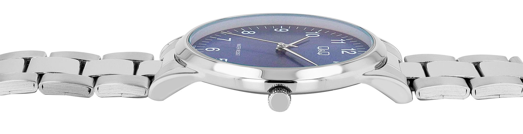 Productinformatie "Q&Q herenhorloge, schakelband, roestvrij staal, zilverkleurig/blauw, 3 ATM, Ø 40 mm"