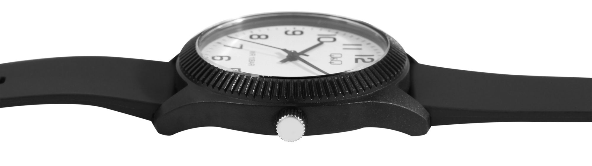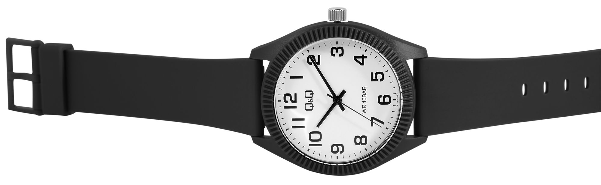 Het analoge unisex polshorloge met 3 wijzers van het merk Q&Q - by Citizen Watch Co. LTD heeft een hoogwaardig en nauwkeurig quartz uurwerk. De zwarte siliconen band is 21 mm breed bij de lug en kan worden geopend en gesloten met een zwarte gesp. De totale lengte van het horloge is 25 cm. De zwarte kunststof kast met mineraalglas heeft een diameter van 41 mm en een kasthoogte van 11 mm. De achterkant van de kast is gemaakt van roestvrij staal en is aan de kast bevestigd met vier roestvrijstalen schroeven. De witte wijzerplaat met zwarte Arabische cijfers maakt het gemakkelijk om de tijd af te lezen. Het polshorloge is ook comfortabel om te dragen dankzij de zachte siliconen band en kan prachtig worden gecombineerd met het sportieve ontwerp. Het materiaal is ook bijzonder huidvriendelijk, waardoor het ideaal is voor mensen met een allergie.