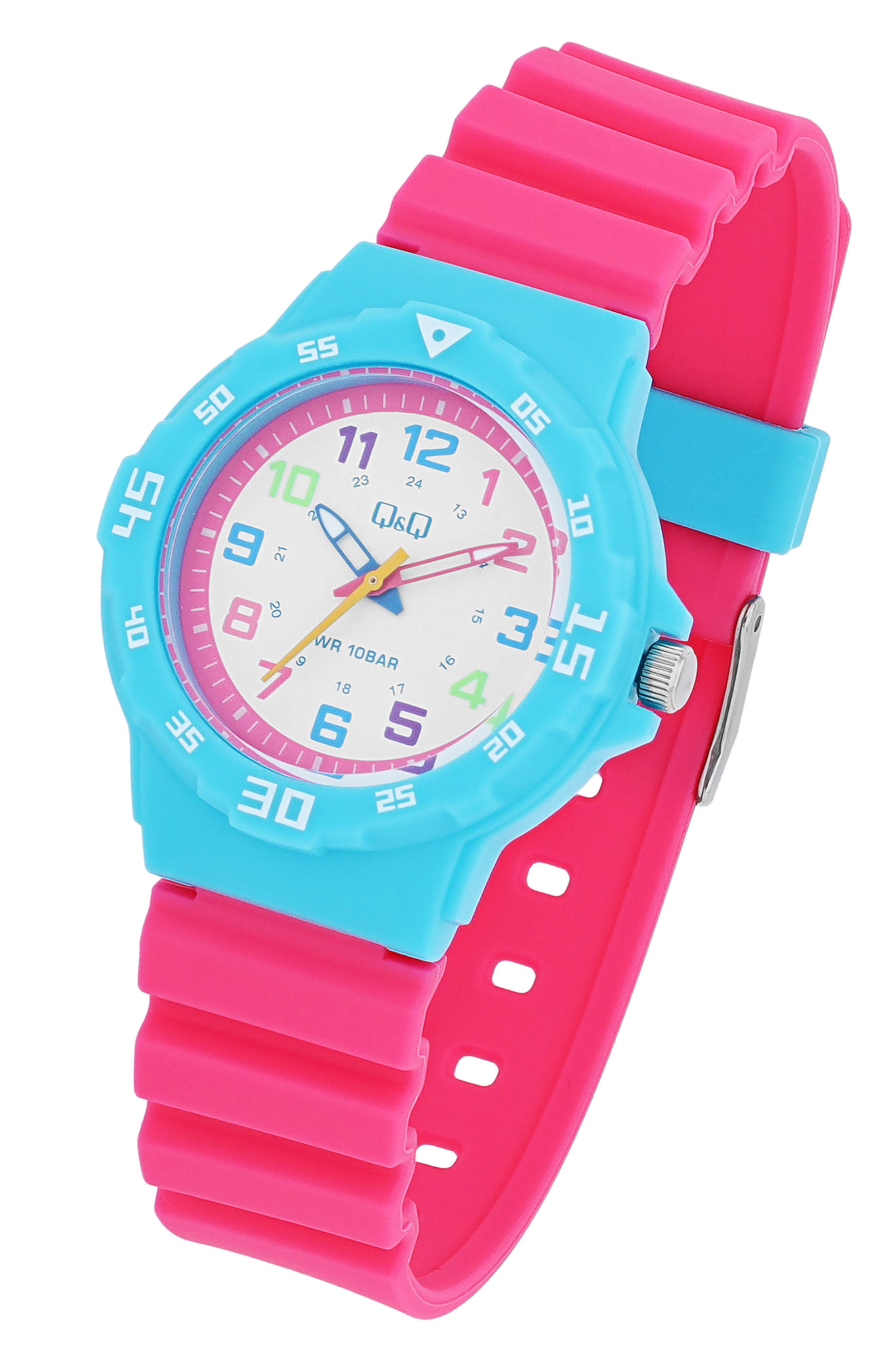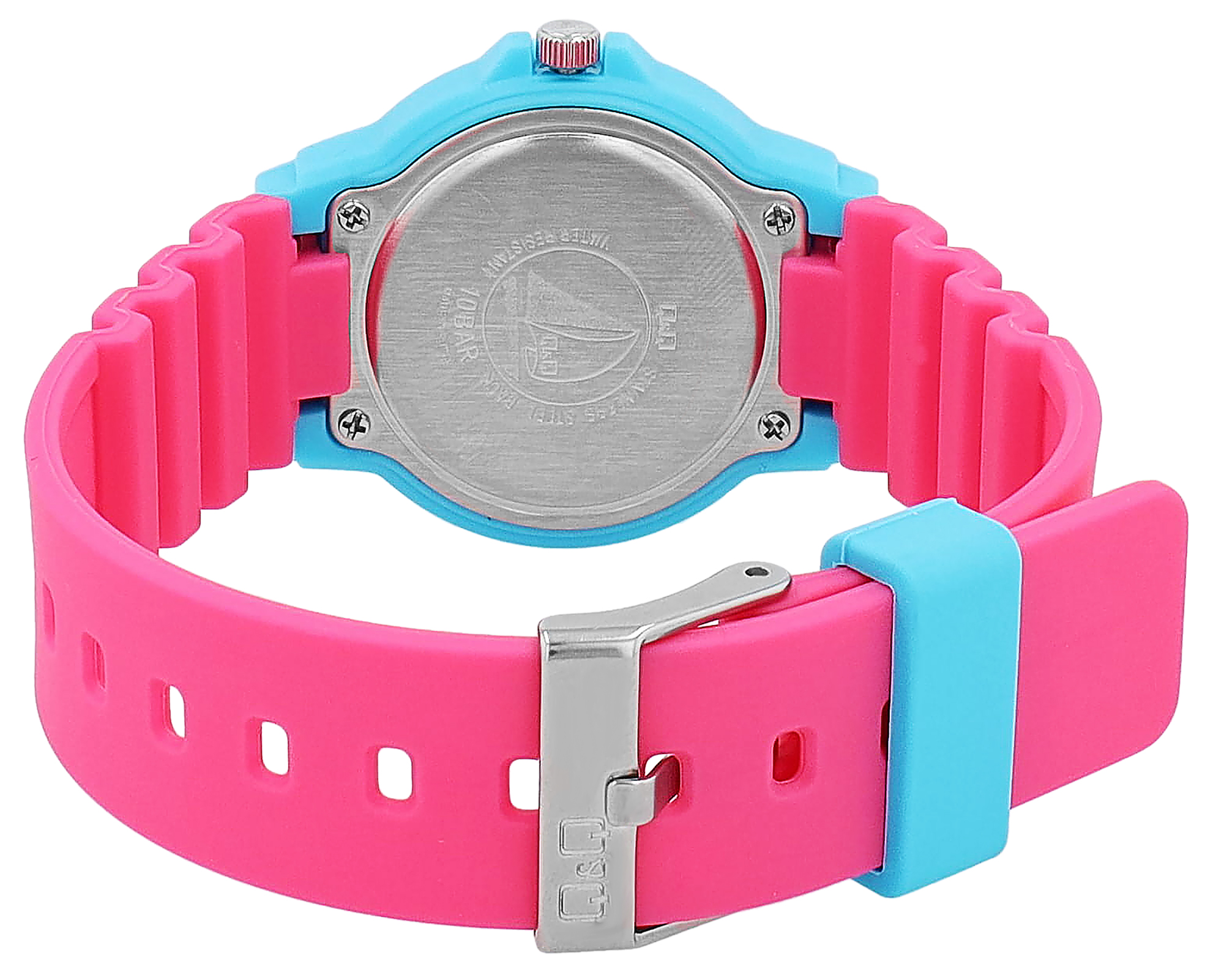 Klaar voor elk avontuur! Het Q&Q - by Citizen Watch Co. LTD polshorloge voor kinderen is de perfecte metgezel voor kleine ontdekkingsreizigers. Met het vrolijke roze en lichtblauwe ontwerp en de sportieve look wordt het al snel een favoriet accessoire om de pols.