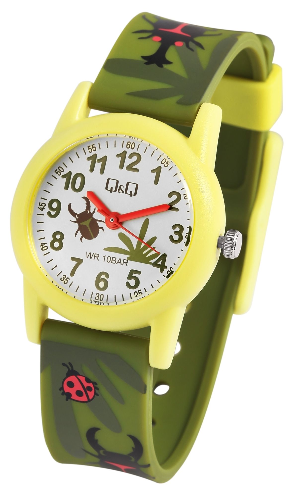 Productinformatie "Q&Q kinderhorloge "Kever en natuurpatroon", kunststof band, 10 ATM"