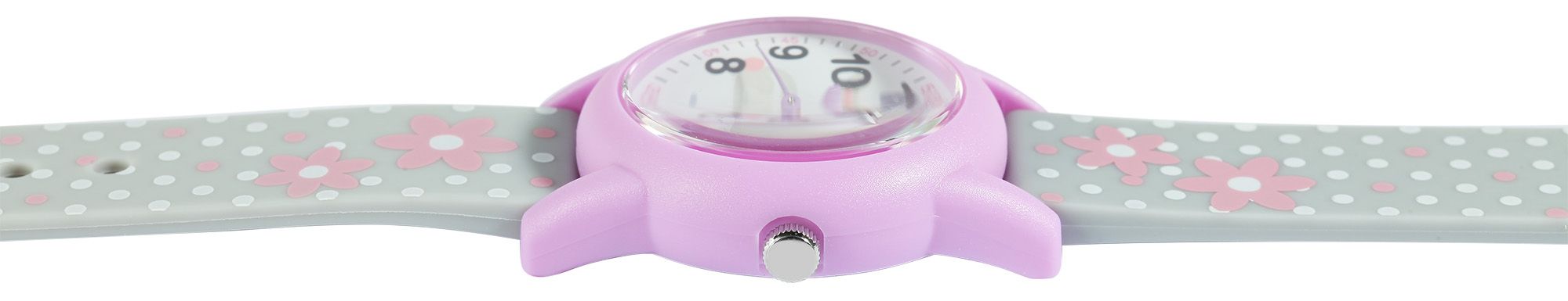 Productinformatie "Q&Q kinderhorloge met siliconen band, "Bloem/Konijntje/stippen", 10 bar"