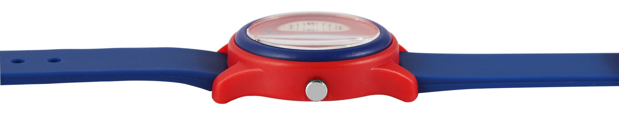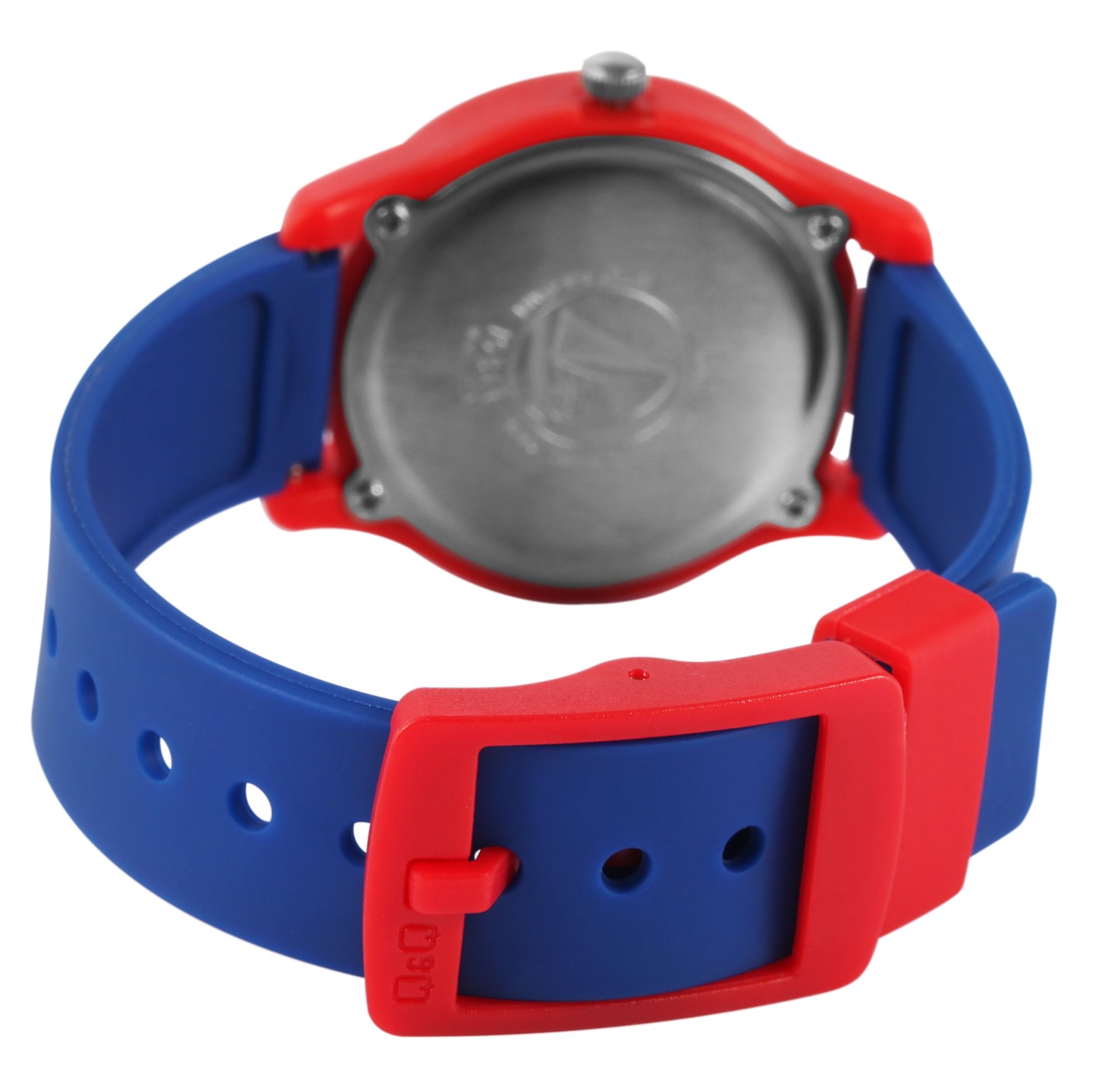 Het analoge 3-hands kinderpolshorloge van Q&Q - by Citizen Watch Co. LTD heeft een hoogwaardig quartz uurwerk. De blauwe siliconen band is 16 mm breed bij de lug en kan worden geopend en gesloten met een rode kunststof gesp. Dankzij het materiaal is het horloge niet alleen robuust, maar ook comfortabel om te dragen. De totale lengte van het horloge is 22,5 cm. De rode kunststof kast met kunststof kristal heeft een diameter van 32 mm en een kasthoogte van 10 mm. De achterkant van de kast is gemaakt van roestvrij staal. De wijzerplaat is wit en lichtblauw en bedrukt met zwarte cijfers. De drie wijzers zijn in verschillende kleuren. Er staat een vliegtuig op de wijzerplaat. Het horloge heeft ook een waterdichtheid van 10 bar.