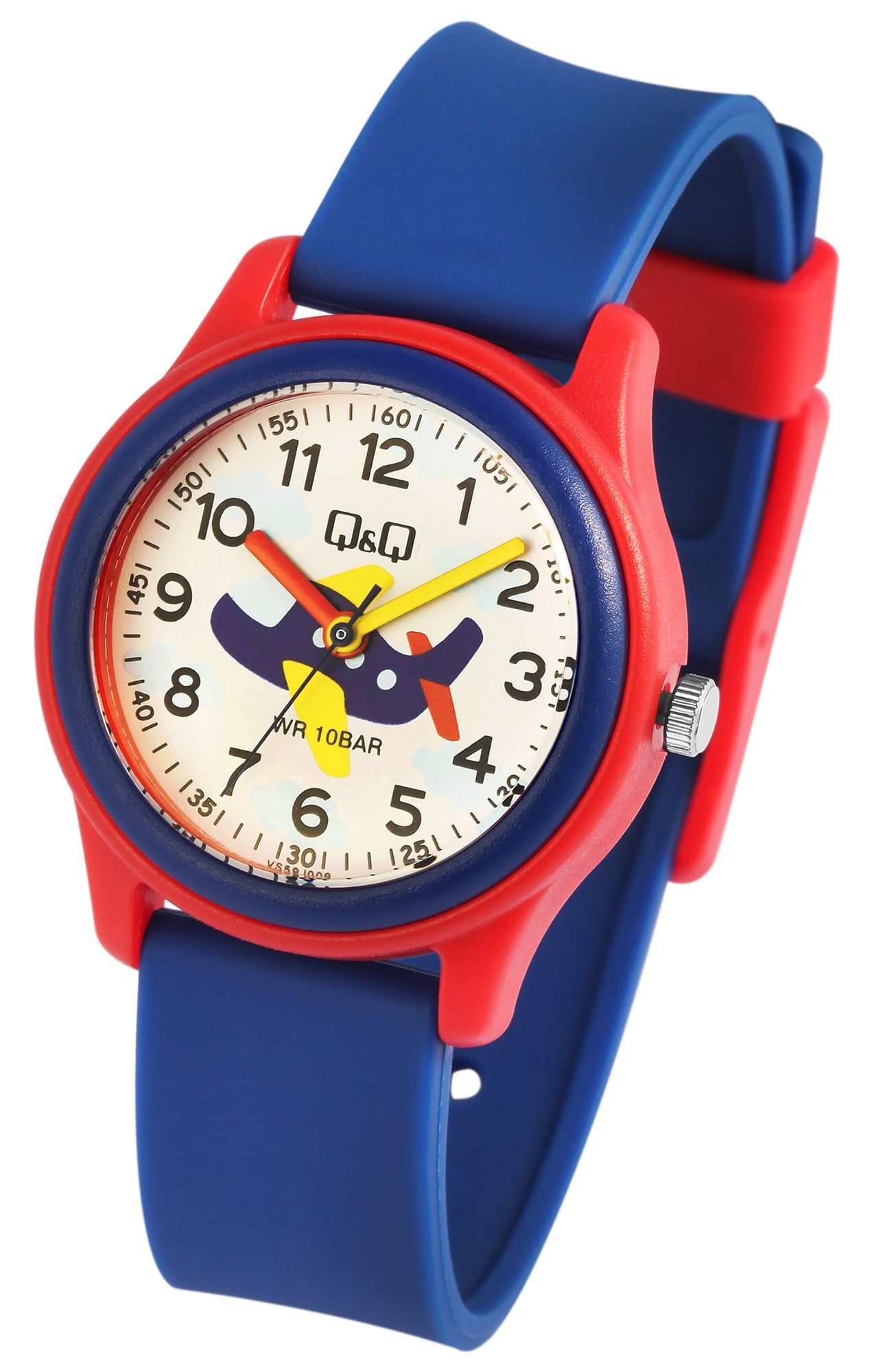 Productinformatie "Q&Q kinderhorloge met siliconen band, "aeroplane" 10 bar"