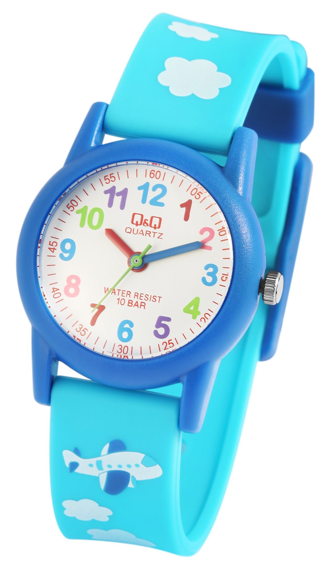 Productinformatie "Q&Q kinderhorloge "vliegtuig", kunststof band, 10 ATM"